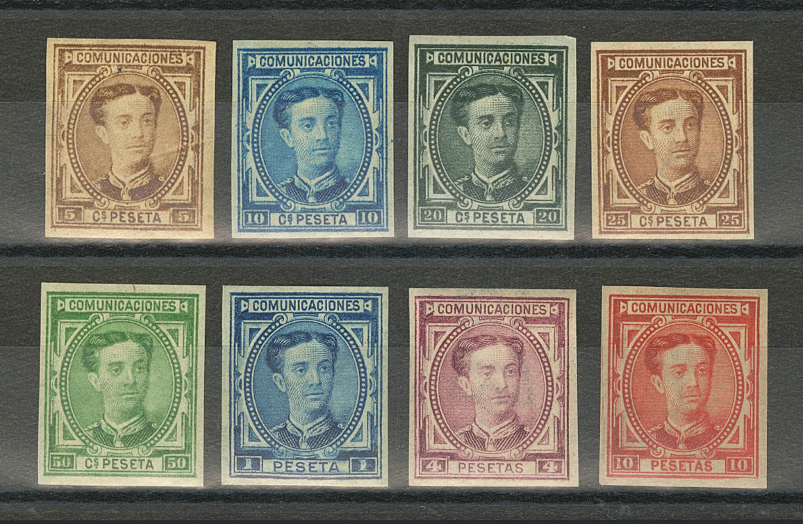 ★★/★ 174/82s. 1876. Serie completa, ocho valores. SIN DENTAR. MAGNIFICA Y RARISIMA INCLUYENDO EL 20 CTS. Edifil 2024: 1.626 Euros
