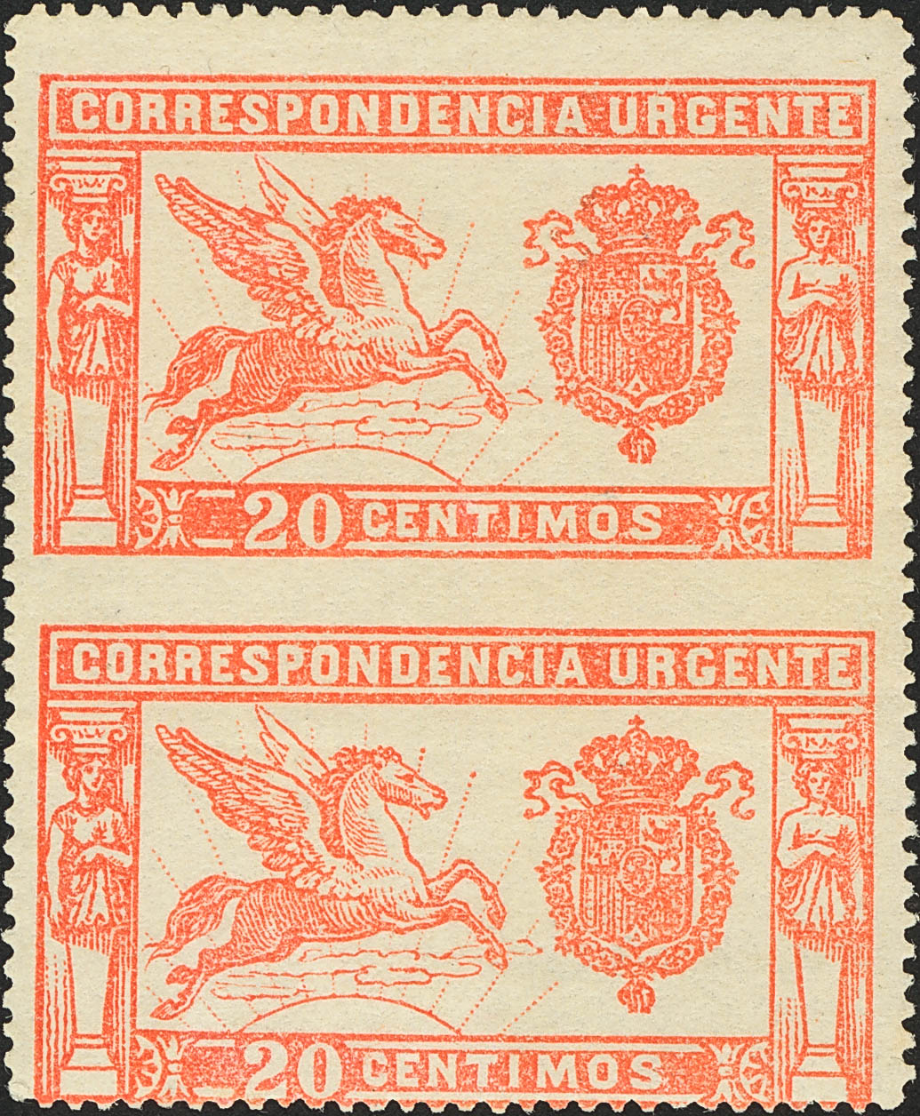 ★★ 256spv. 1905. 20 cts rojo, pareja. SIN DENTAR ENTRE LOS SELLOS. MAGNIFICA. Edifil 2020: 380 Euros