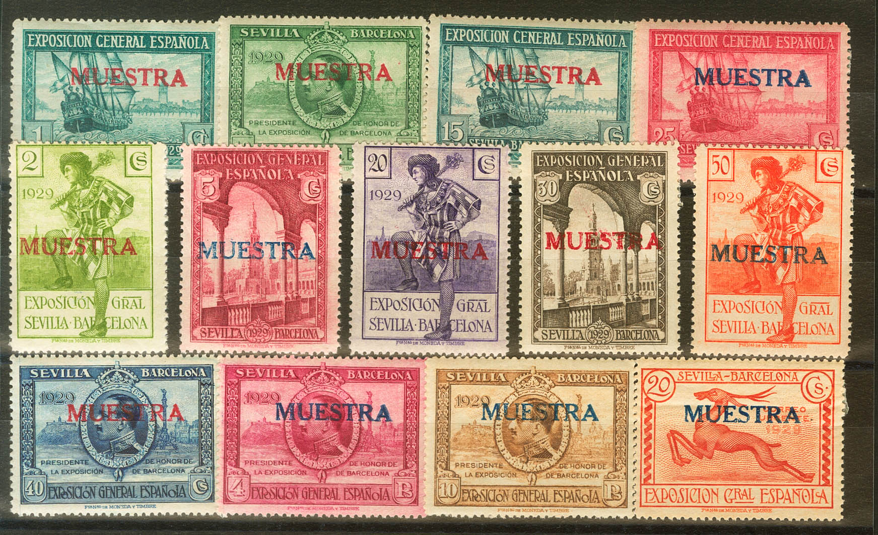 ★ 434/47M. 1929. Serie completa. MUESTRA, en letras gruesas y NºA000.000. MAGNIFICA Y RARA. Edifil 2020: 540 Euros