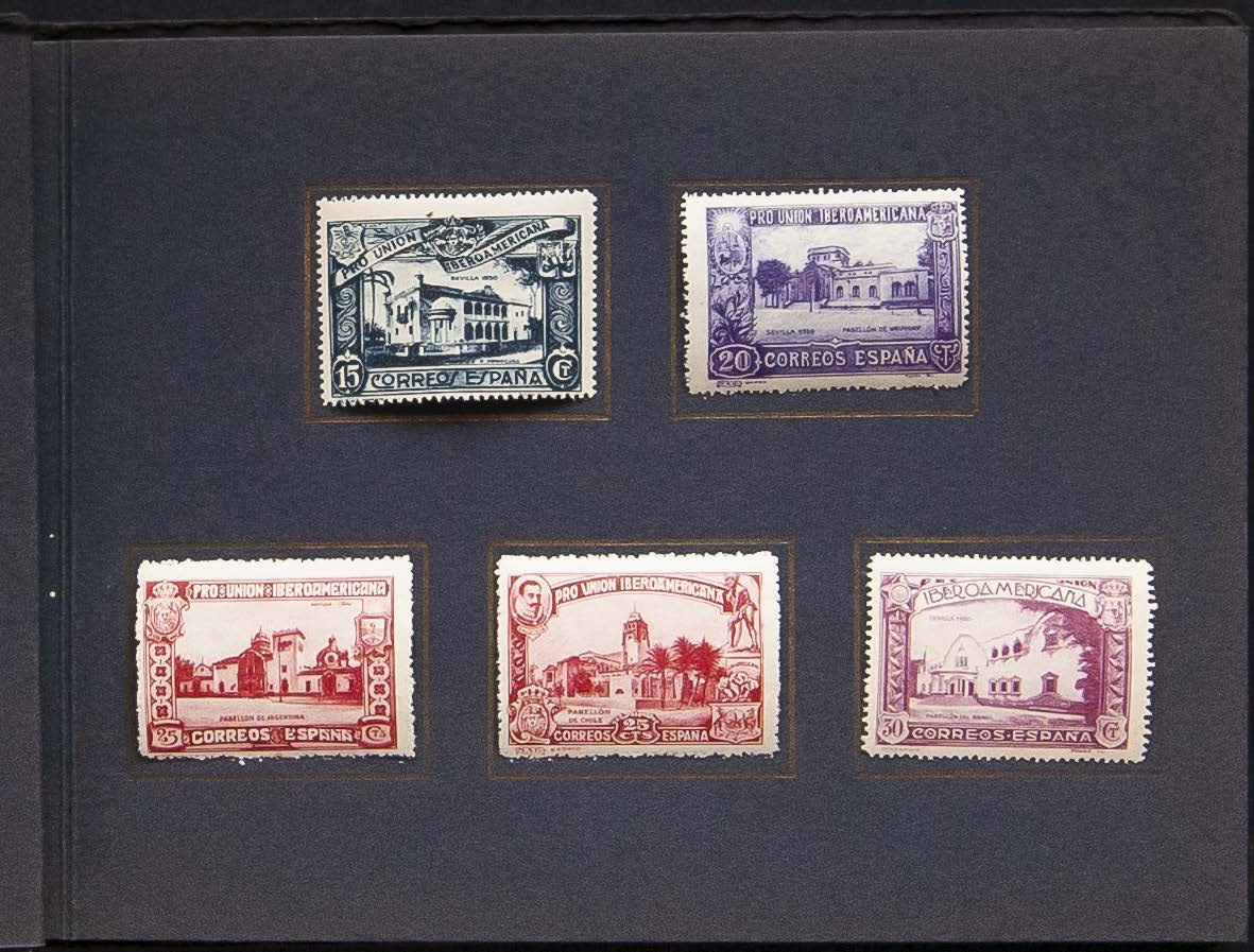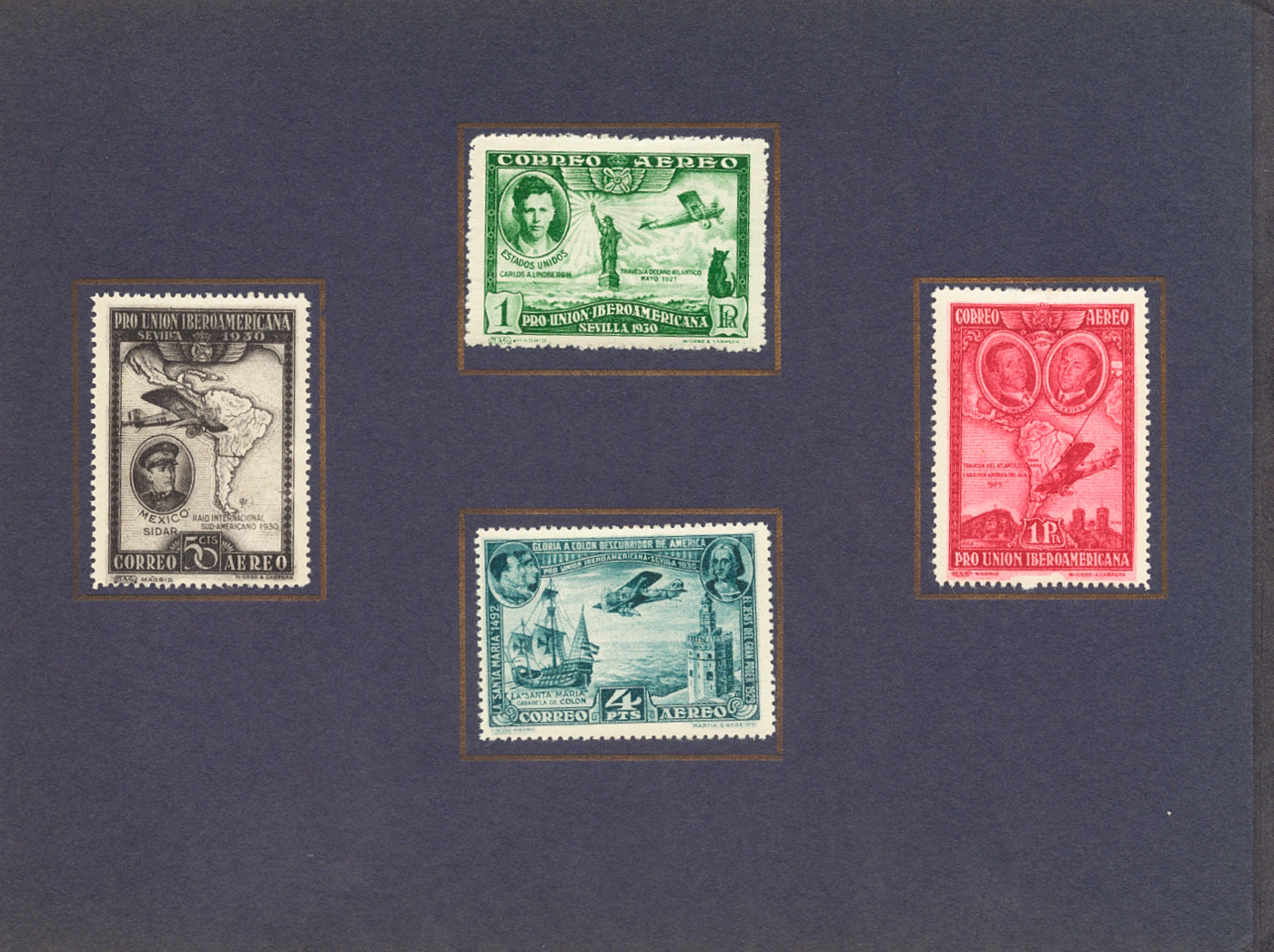 ★ 566/80, 582, 583/89, 591. 1930. Dos series completas, a falta del 10 pts (grabado) y 1 pts castaño lila (aéreo), adheridos sobre álbum para obsequio. BONITO E INUSUAL.