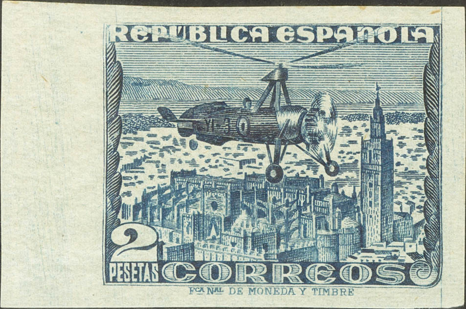 ★★ 769s. 1938. 2 pts azul, borde de hoja. SIN DENTAR. MAGNIFICO. Edifil 2024: 87 Euros