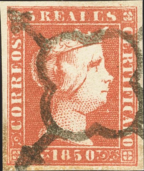 3F. 1850. 5 reales rojo. FALSO SPERATI, al dorso marca de la B.P.A. MAGNIFICO.
