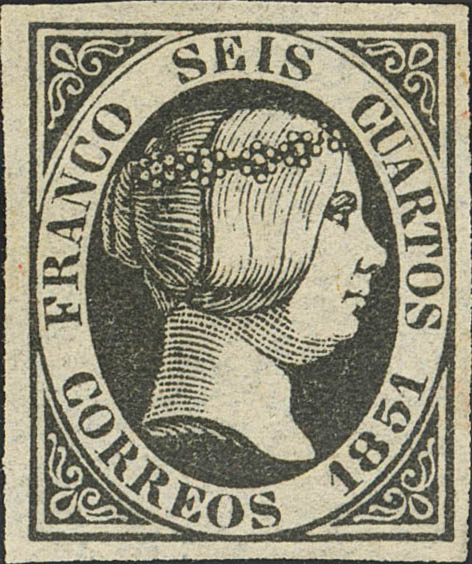 (★) 6. 1851. 6 cuartos negro. Márgenes amplios y color intenso. MAGNIFICO. Cert. COMEX.