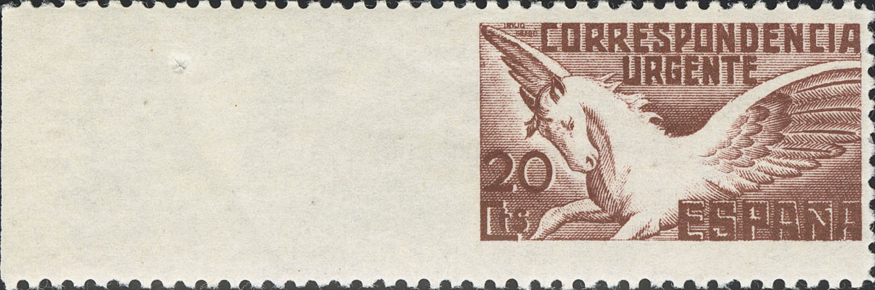 ★★ 861. 1938. 20 cts castaño. SIN DENTAR MARGEN IZQUIERDO. MAGNIFICO, NO CATALOGADO.