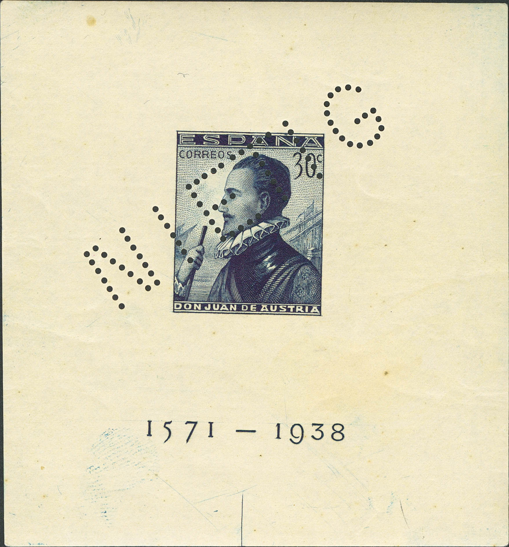 ★★ 864Mcc. 1938. 30 cts azul índigo. CAMBIO DE COLOR y NIETIG, taladrado en diagonal. MAGNIFICA Y RARA. Edifil 2021: 165 Euros