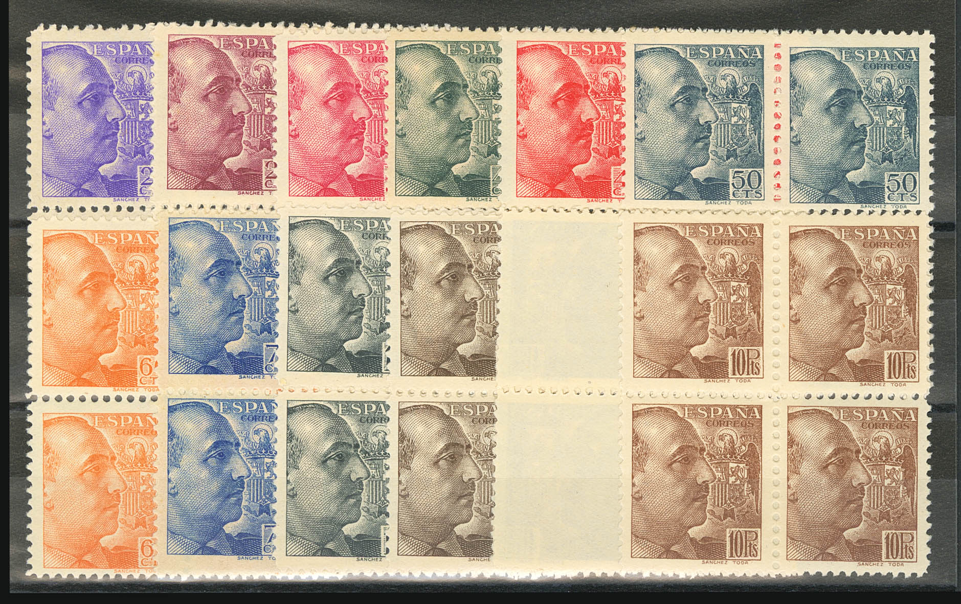 ★★/(★) 867/78(4). 1939. Serie completa, en bloque de cuatro (el 4 pts sin goma). MAGNIFICA. Edifil 2024: -1.000 Euros