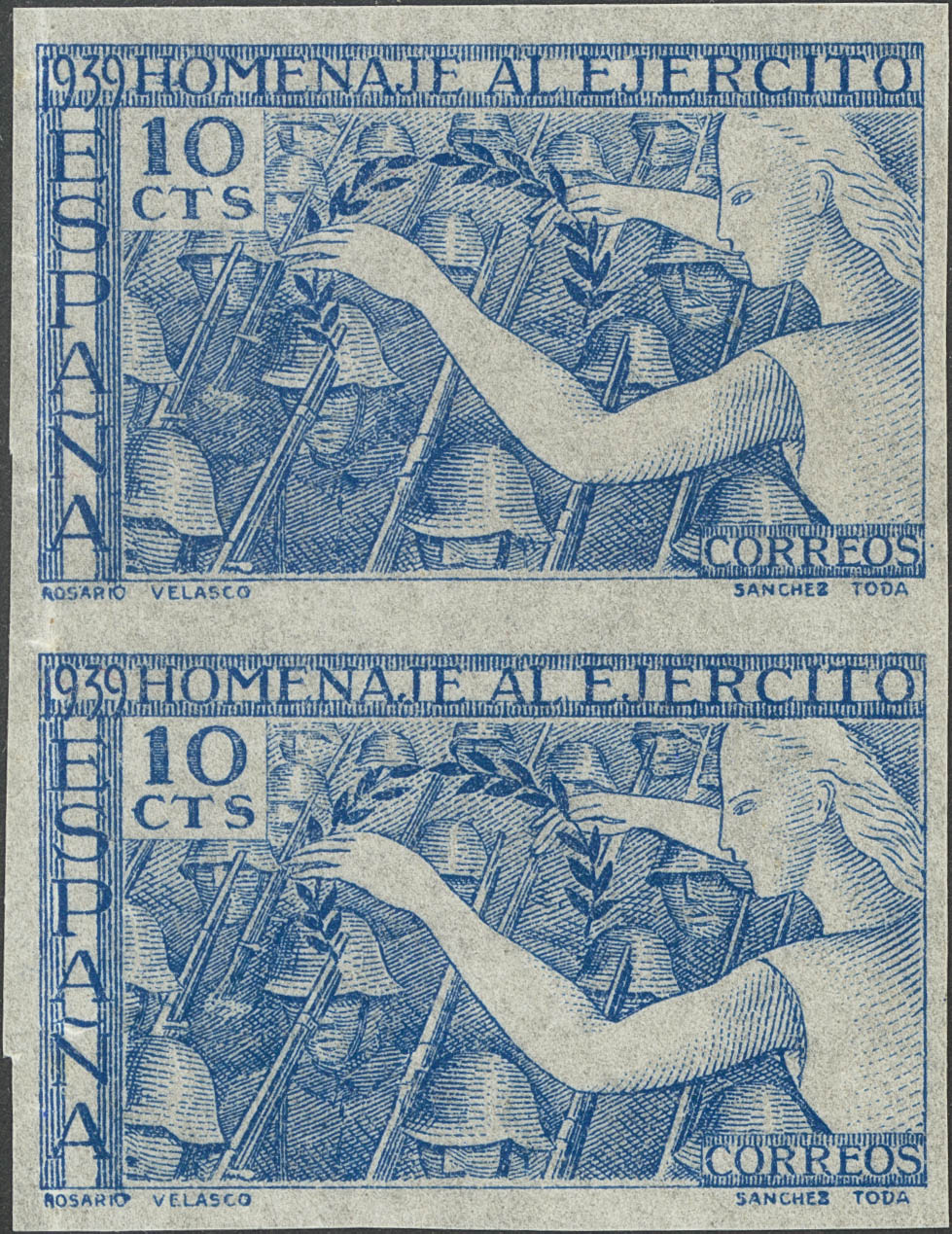 (★) 887pas(2). 1939. 10 cts azul, pareja. PAPEL CEBOLLA y SIN DENTAR. MAGNIFICA Y RARA. Edifil 2020: 220 Euros