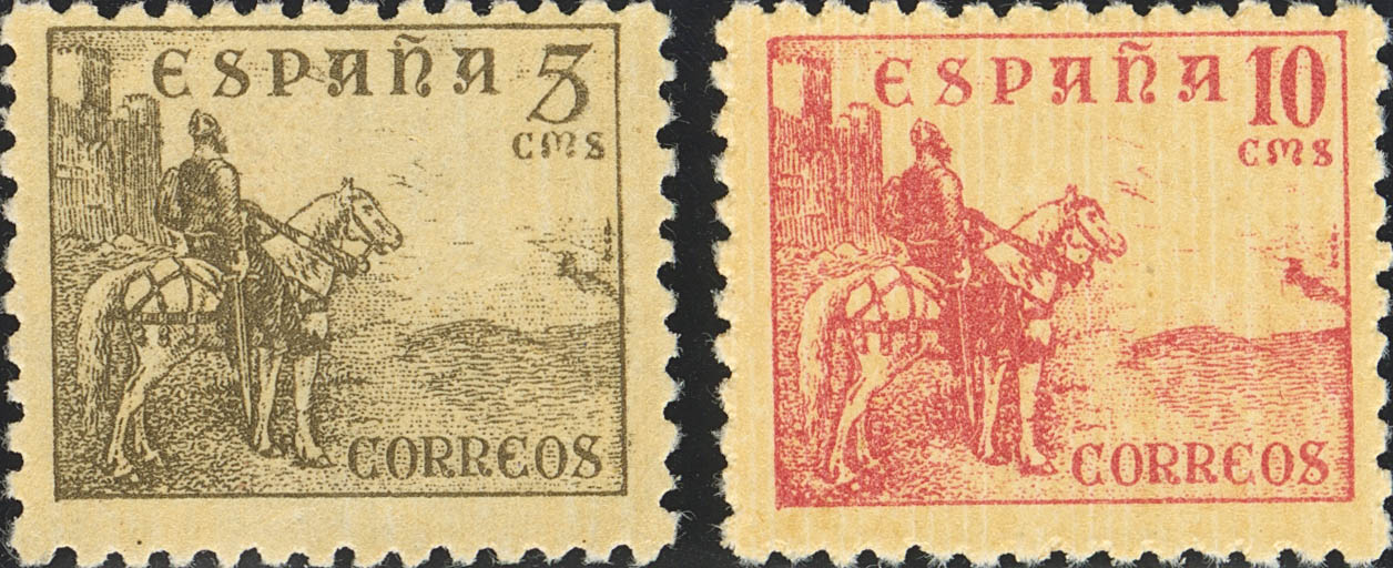 ★★ 916/17eg. 1948. 5 cts sepia y 10 cts rosa. IMPRESO EN EL LADO DE LA GOMA. MAGNIFICOS, EL 10 CTS NO CATALOGADO.