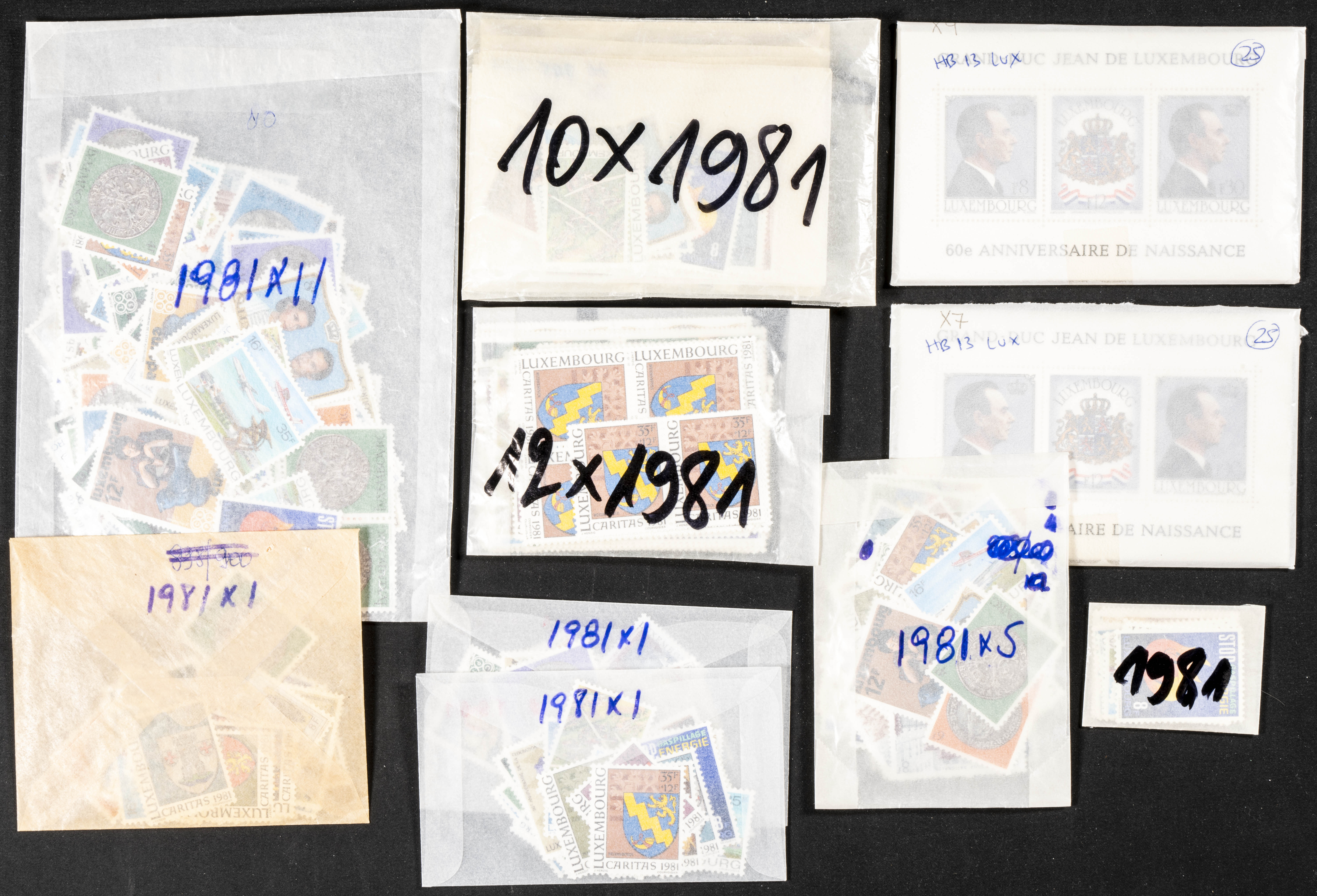 ★★Yvert 972/95(42). 1982. Conjunto de cuarenta y dos años completos (incluye sellos de hoja bloque) 1981 de Luxemburgo, en nuevo (en sobres de cristal). A EXAMINAR. Yvert 2023: 1.134 Euros