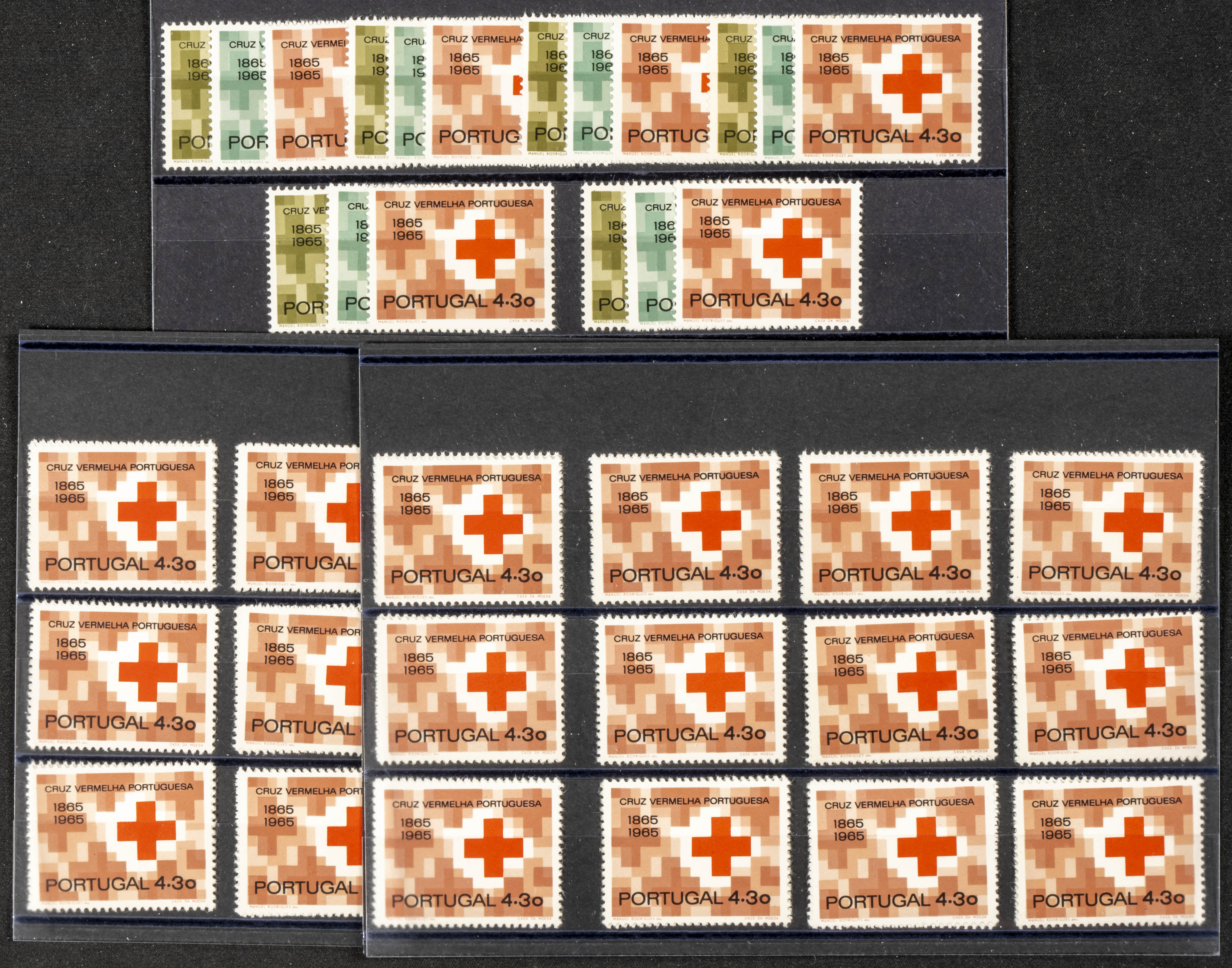 ★★Yvert 968/70(30). 1965. Conjunto de treinta series completas de CRUZ ROJA de Portugal 1965, en nuevo. A EXAMINAR. Yvert 2020: 600 Euros