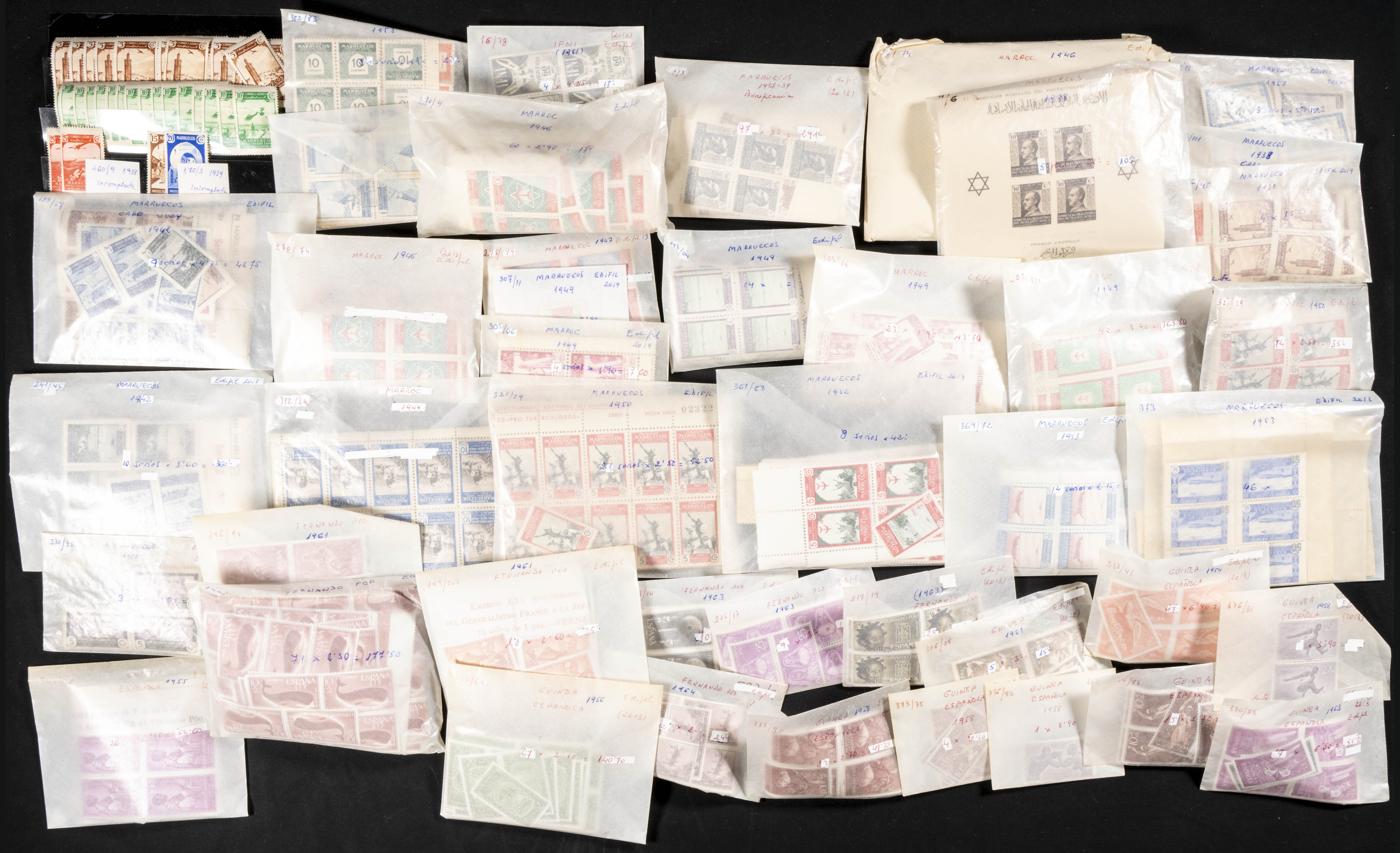 ★★(1942ca). Interesante conjunto-stock de sellos sueltos y series completas de las Colonias Españolas de Africa entre 1942 y 1963, en nuevo y con cantidades diferentes. ALTISIMO VALOR DE CATALOGO. A EXAMINAR.