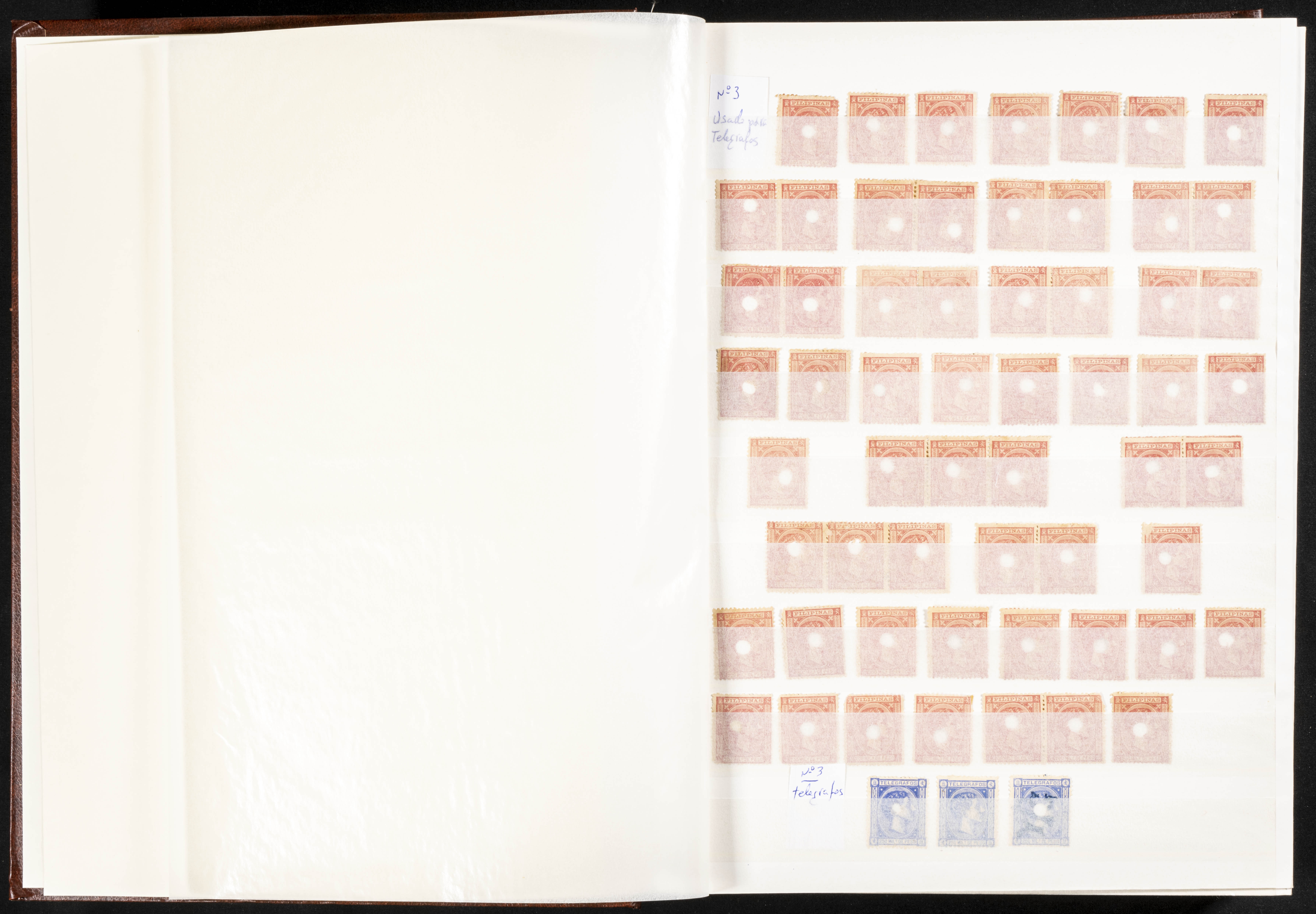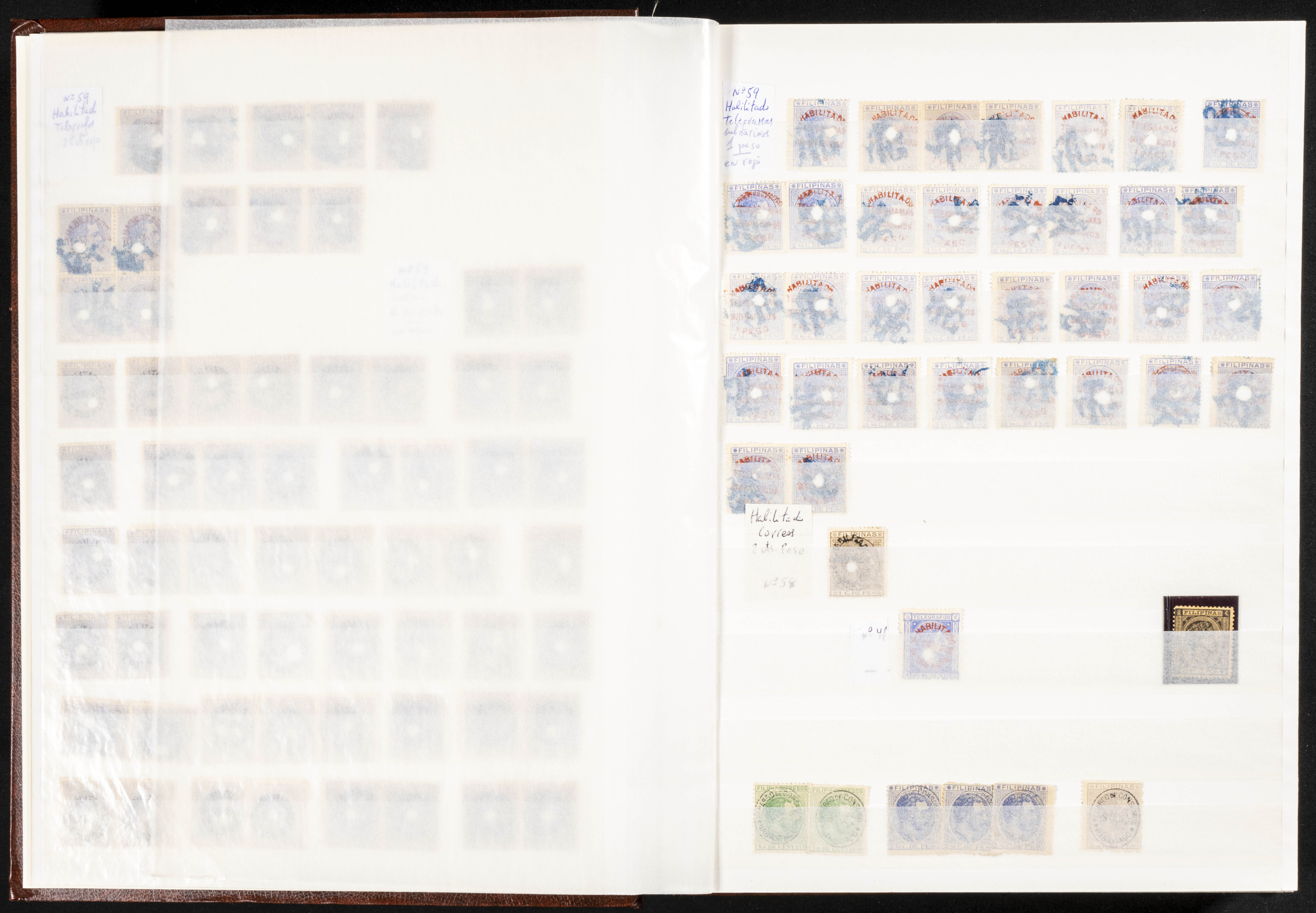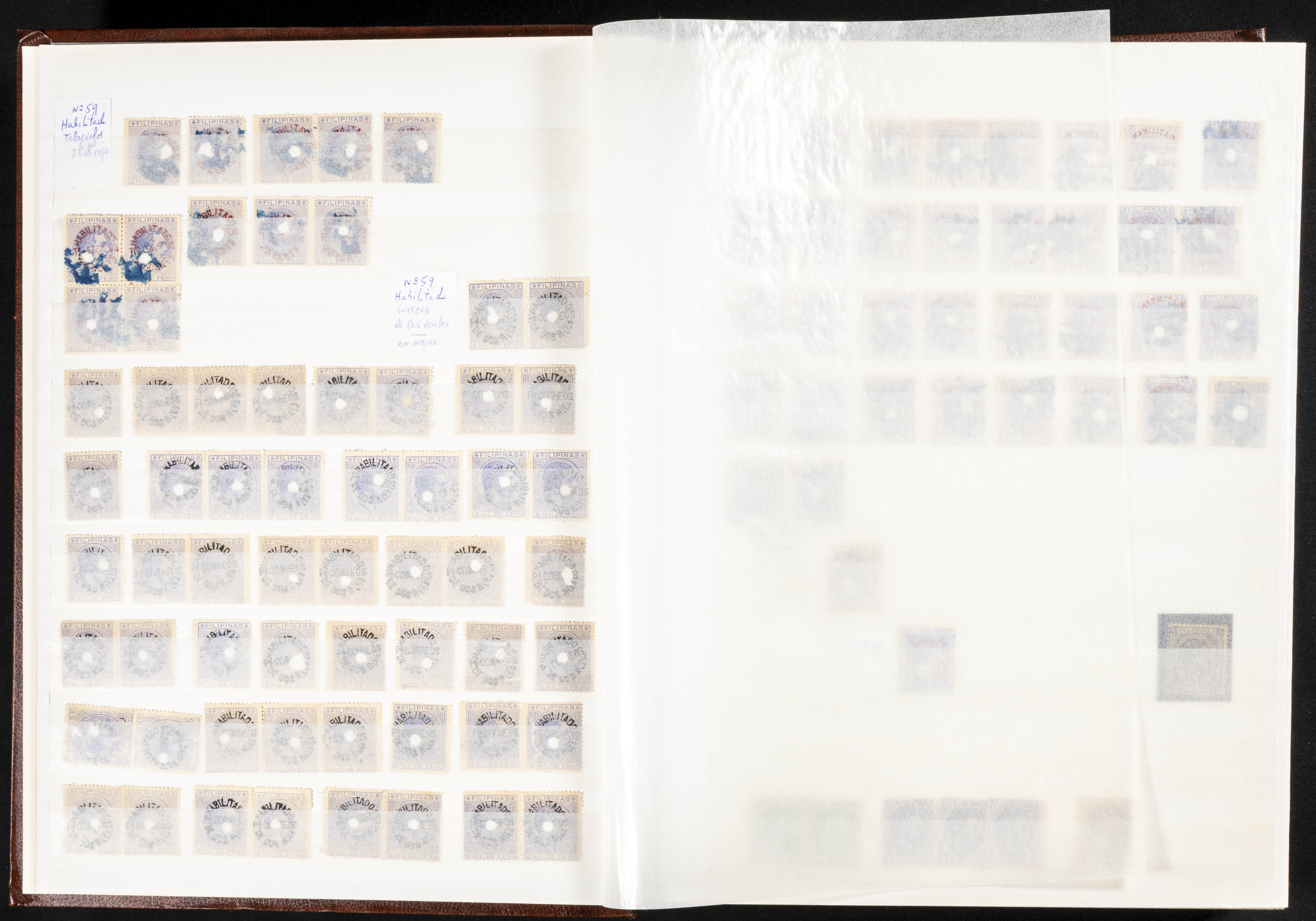 (1855ca). Interesante conjunto de cientos de sellos de Colonias Españolas de Ultramar entre 1855 y 1898 (Antillas, Cuba, Filipinas y Puerto Rico), en usado (alguno nuevo) e incluye cientos de sellos con taladro de Telégrafos de las emisiones de Alfonso XII y Alonso XIII de Filipinas, así como numerosos matasellos especiales y sobrecargas de Impuesto de Guerra y Habilitados. A EXAMINAR.