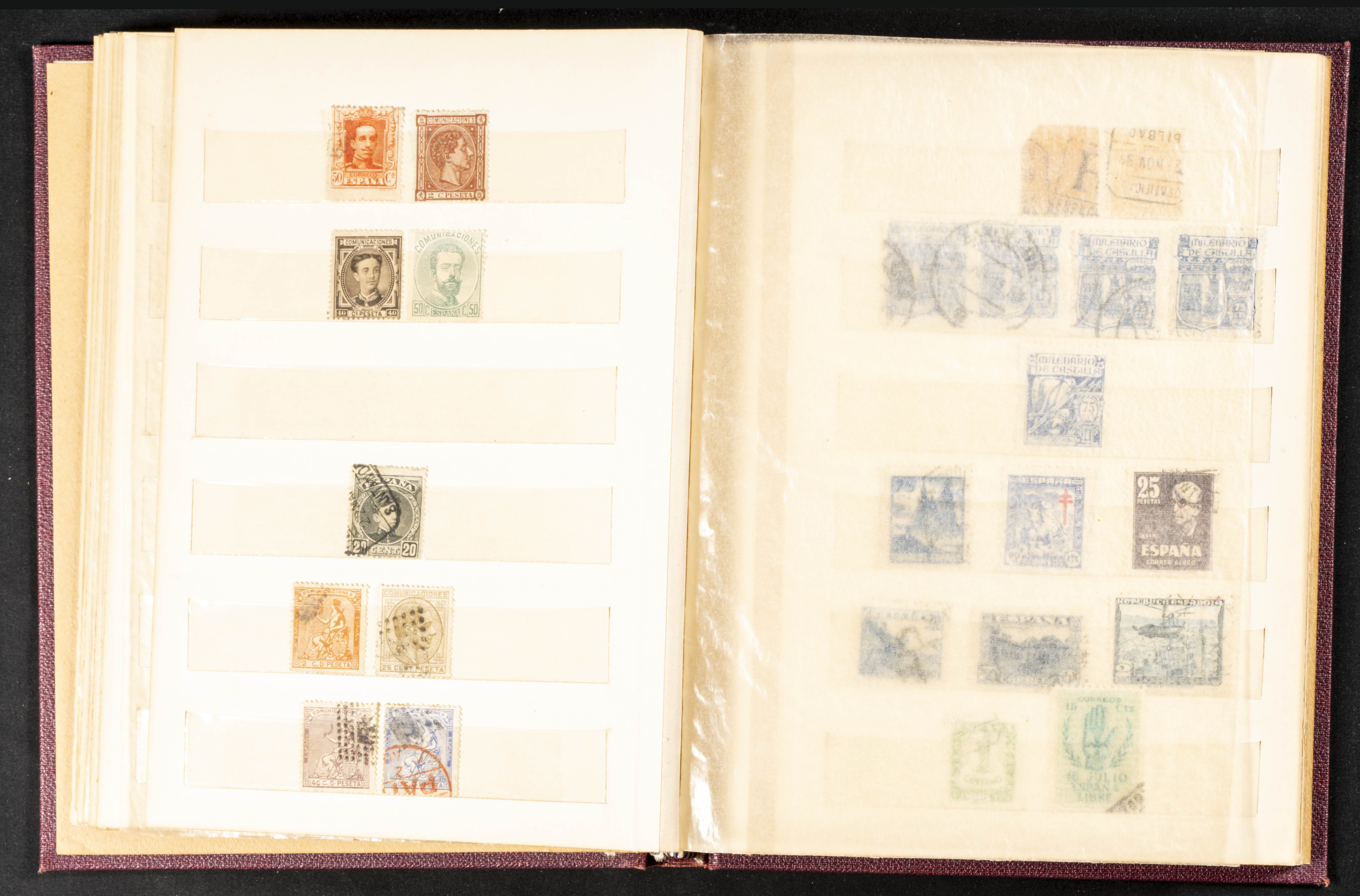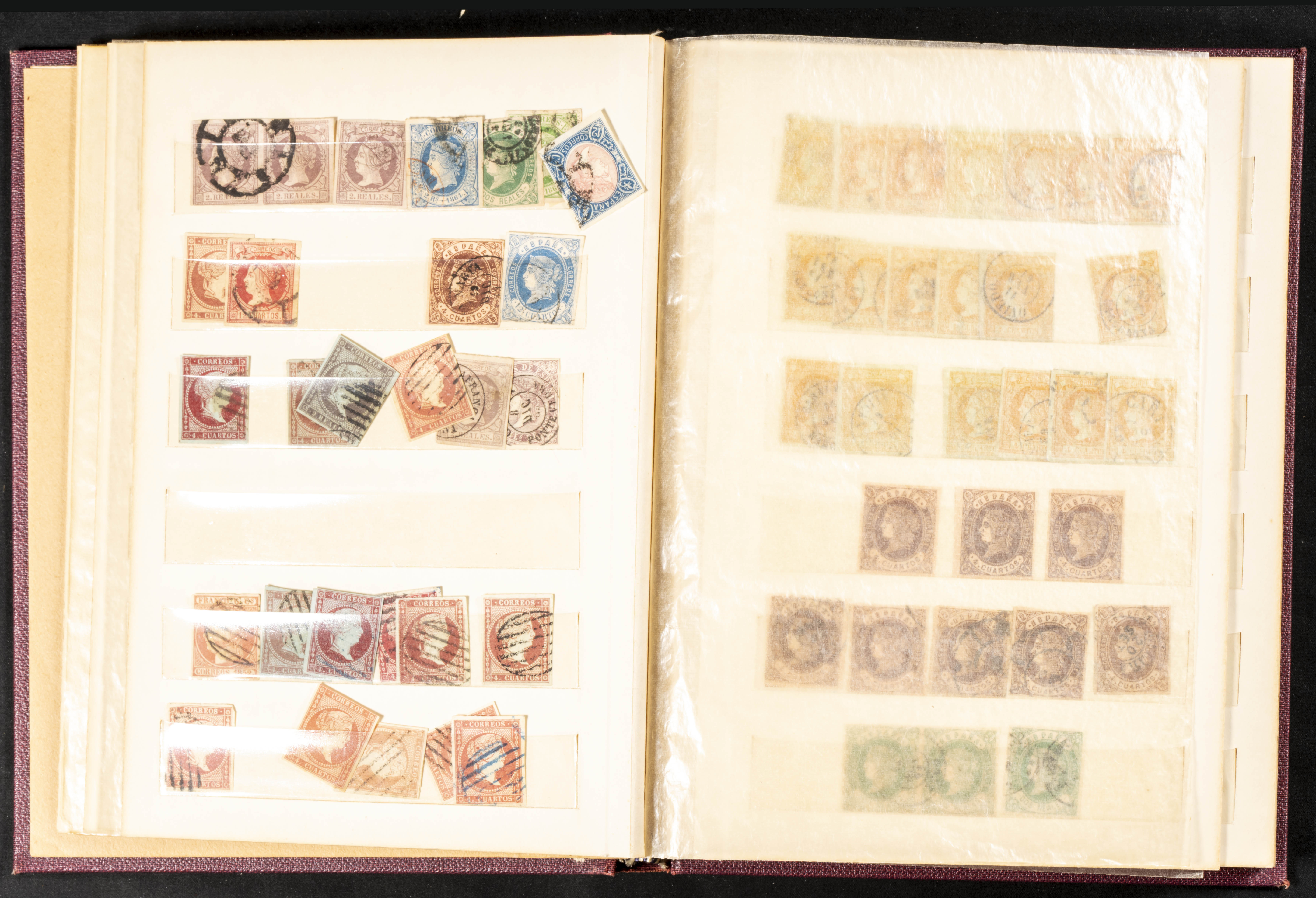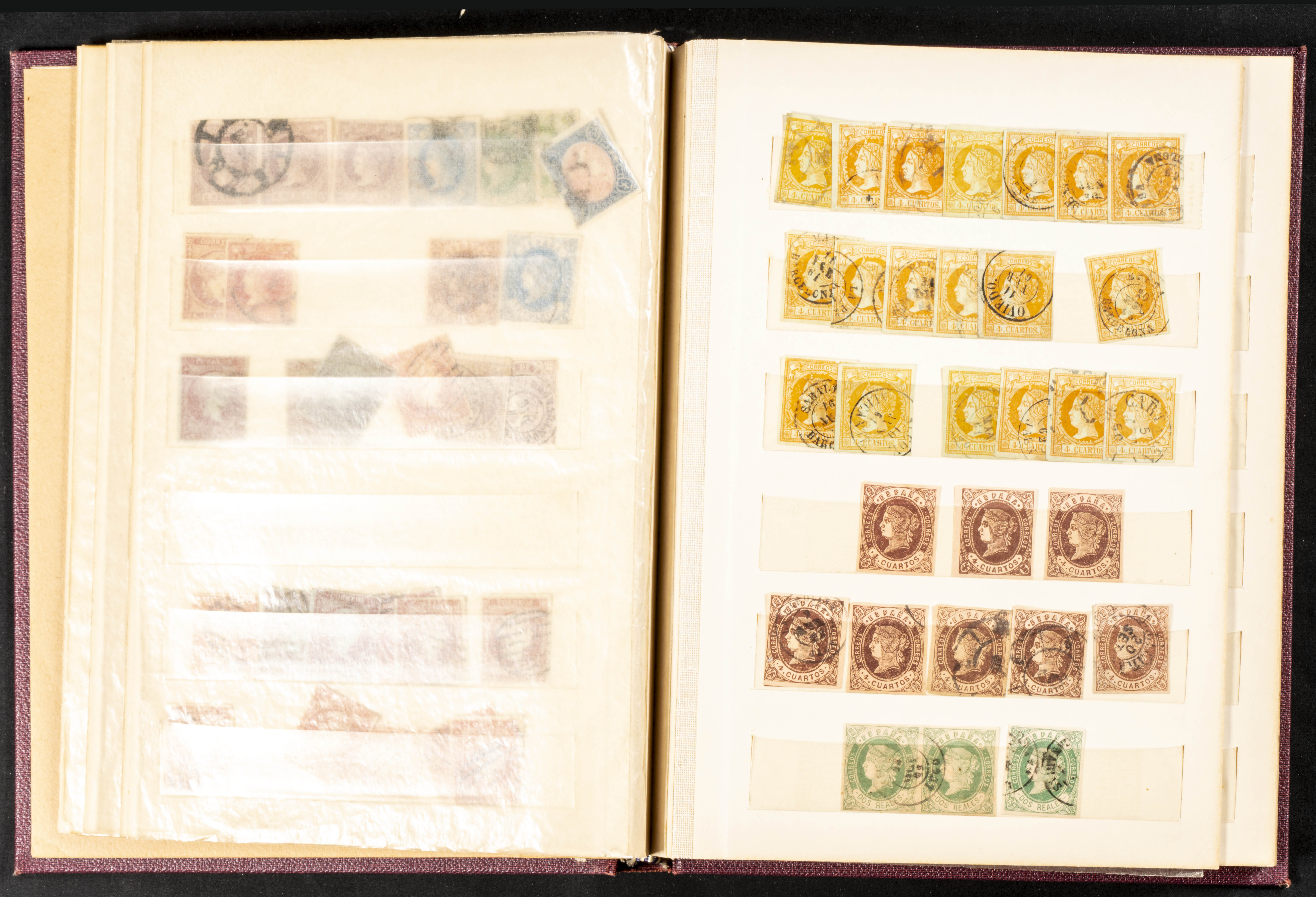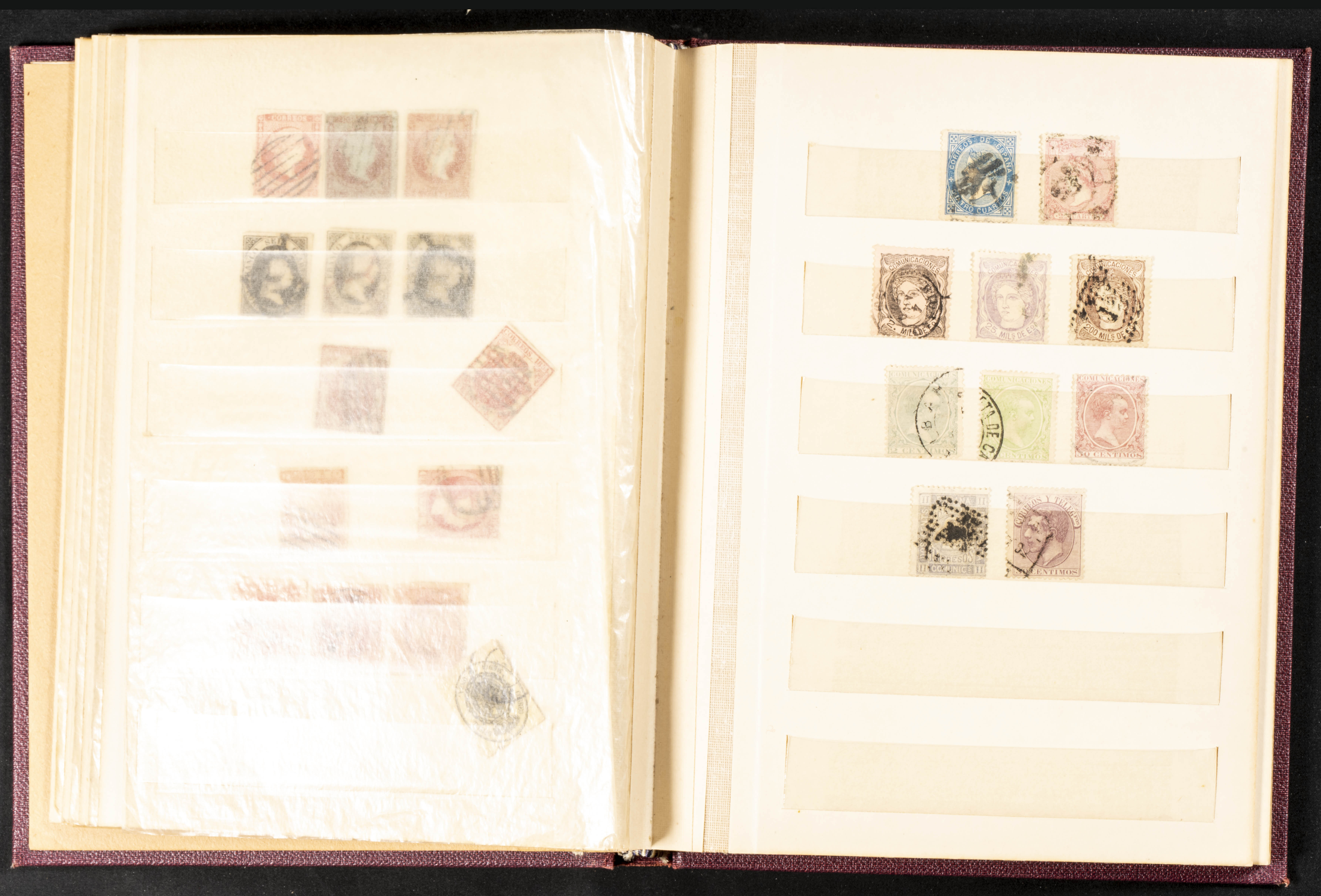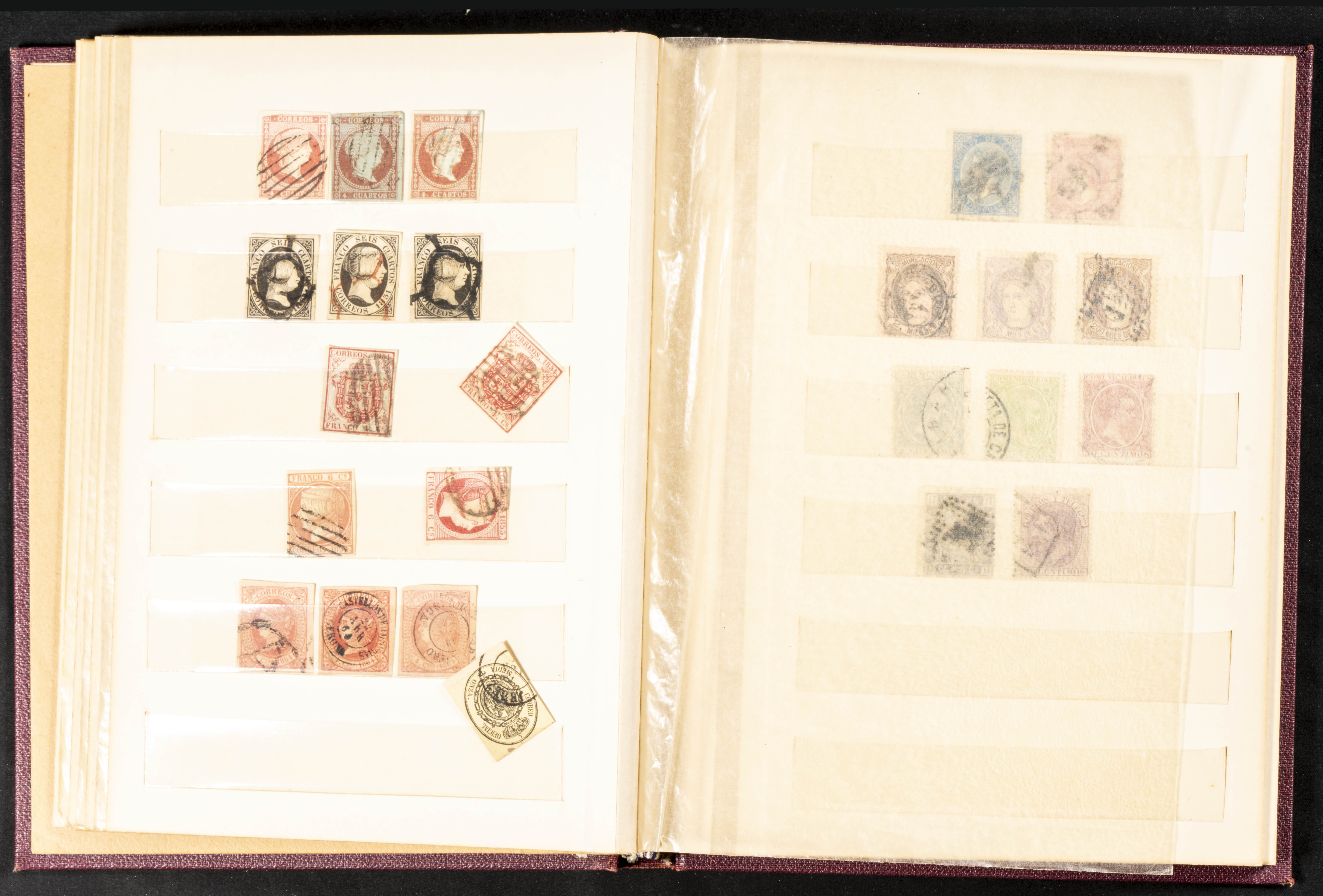 (1851ca). Conjunto de sellos clásicos usados entre 1851 y 1900, la mayoría sellos de 6 cuartos y 4 cuartos, incluye algún sello del 1º y 2º Centenario, Colonias españolas, un resto de colección de Francia entre 1849 y 1930, de Dinamarca entre 1880 y 1933 y de Argentina entre 1865 y 1946. A EXAMINAR.