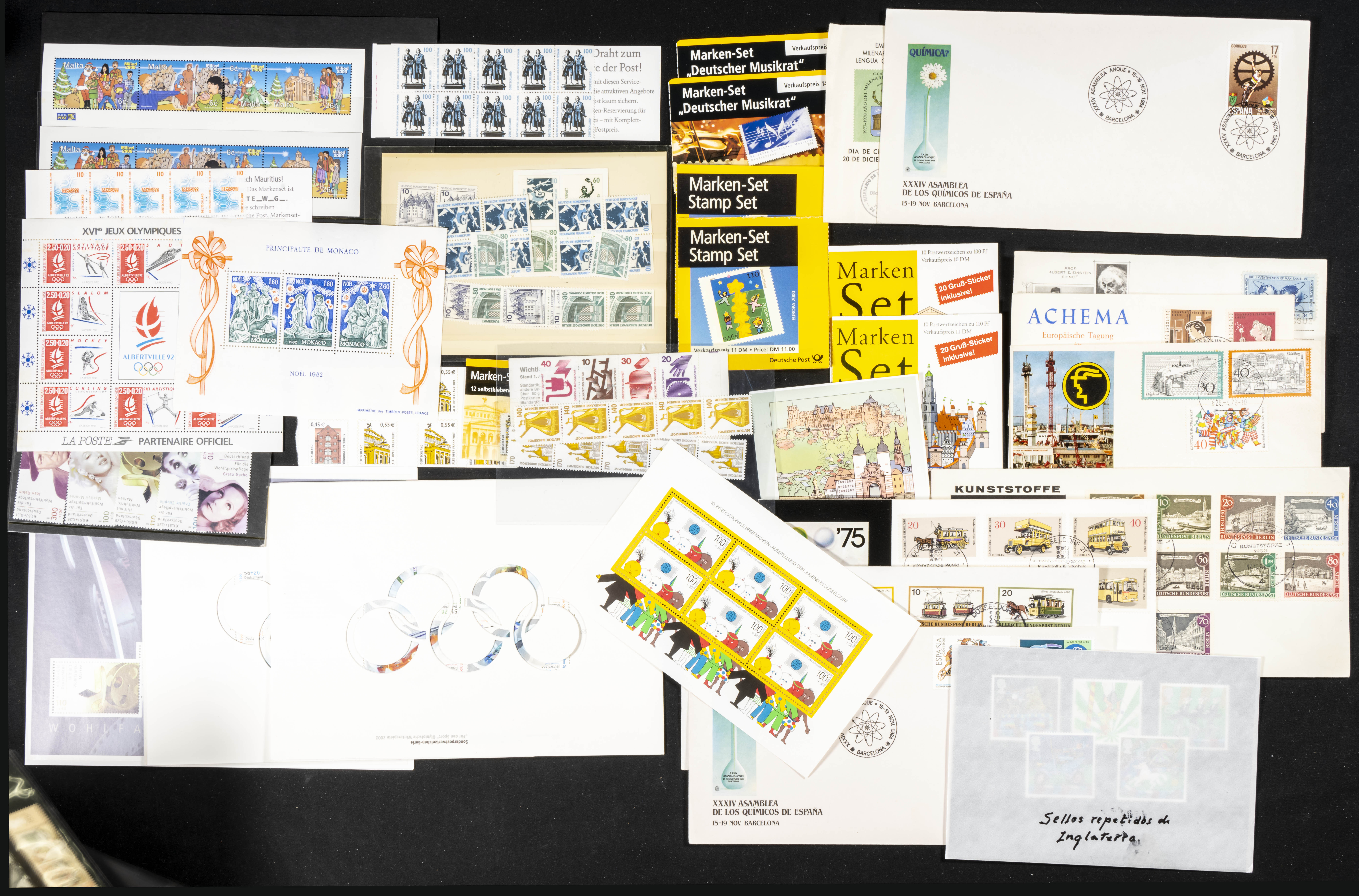 ★★/(1990ca). Conjunto de series completas, hojas bloque y algún carnet de Alemania Occidental y Gran Bretaña, en nuevo y la mayoría posterior a los años noventa, incluye una serie de Italia con viñetas de Guerra usadas, sellos de servicio de Alemania Imperio y un pequeño conjunto de series del tema UPAEP, en nuevo. ALTO VALOR DE CATALOGO. A EXAMINAR.