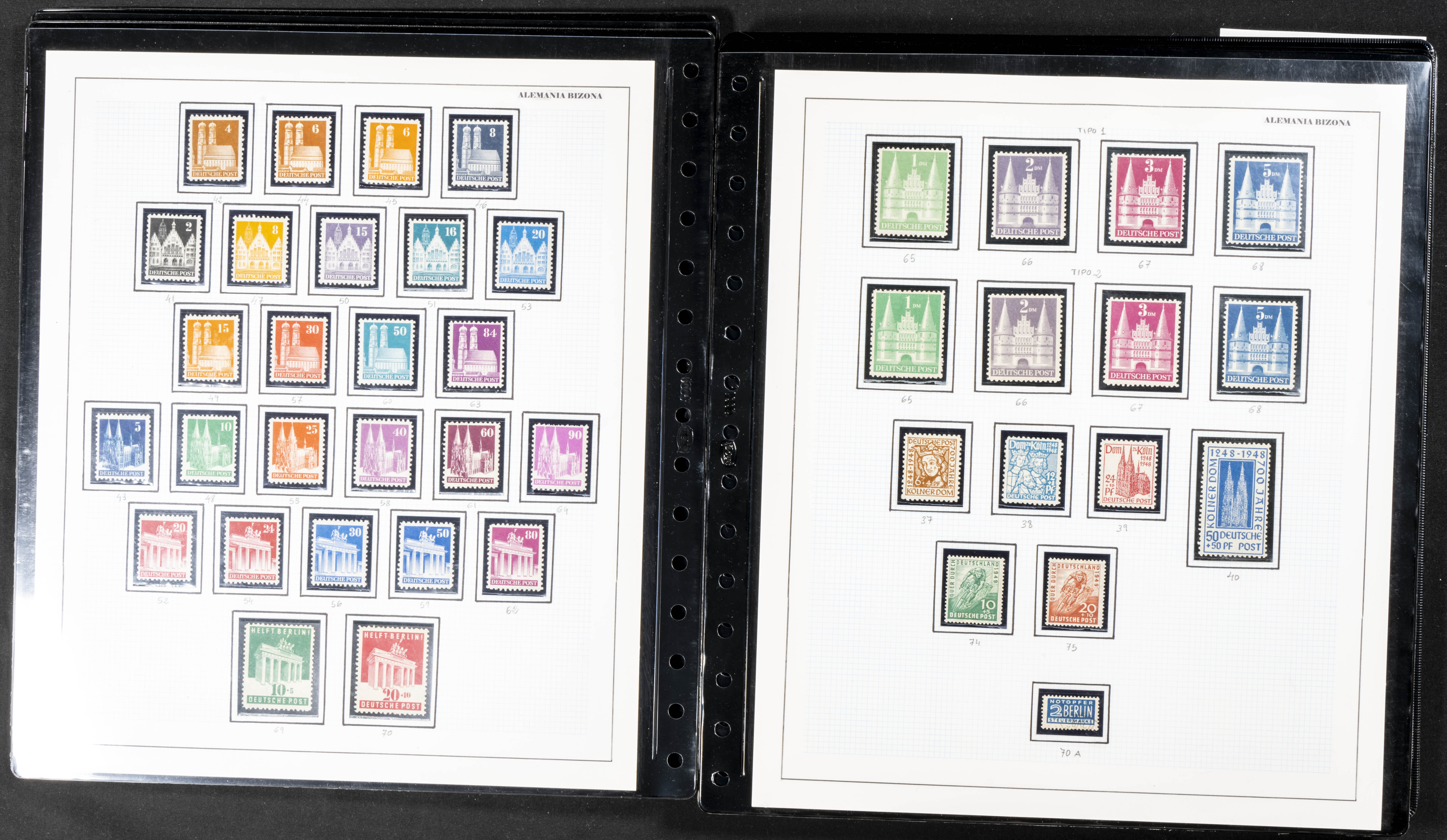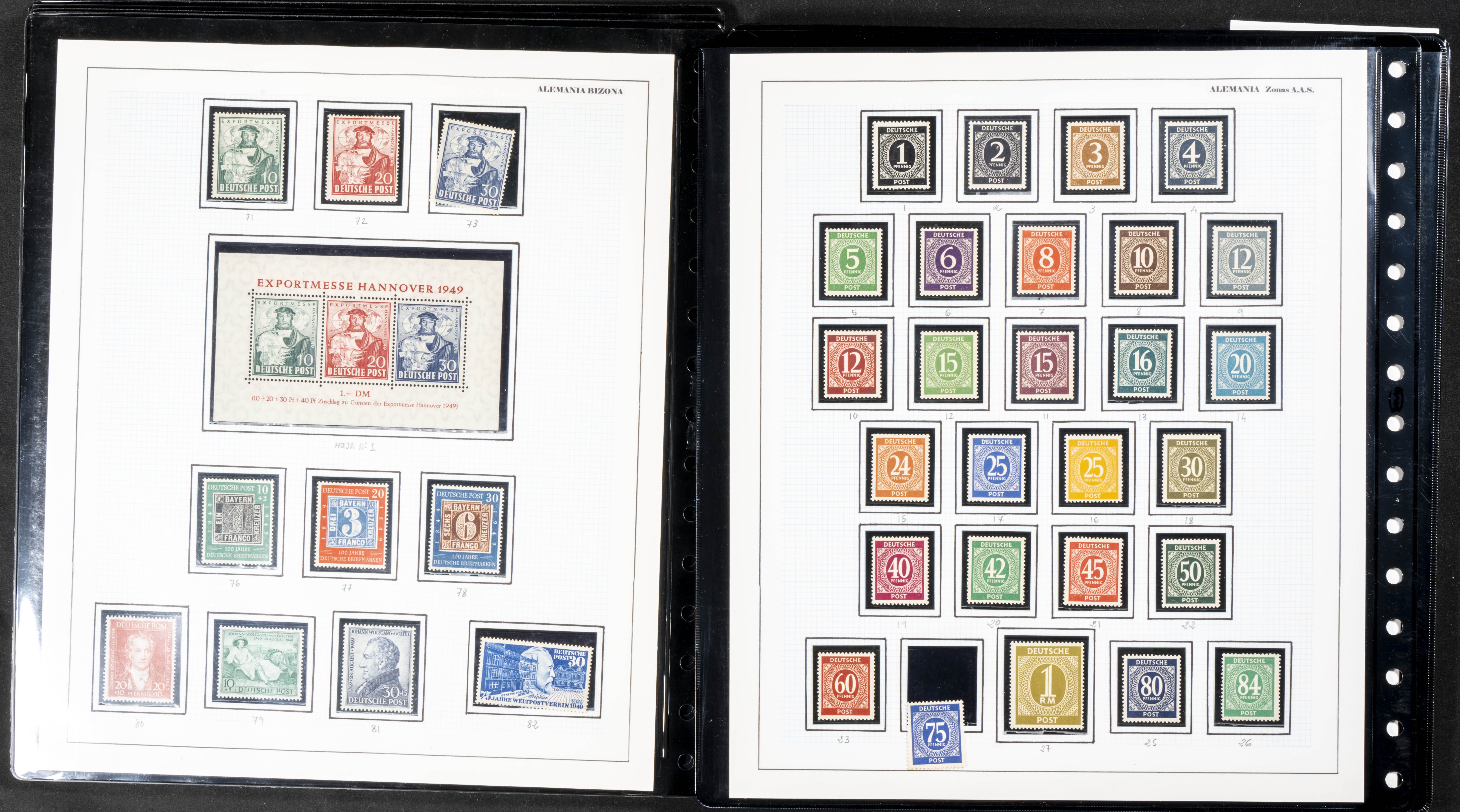 ★★/★(1926ca). Colección de Alemania Berlín entre 1948 y 1989 a falta de las primeras series de alto valor, en nuevo e incluyendo Alemania Bizona, Ocupación Interaliada, Ocupación Soviética y Alemania Imperio en nuevo (algún sello o serie en usado) con numerosas series y hojitas bloque de valor medio. ALTO VALOR DE CATALOGO. A EXAMINAR.