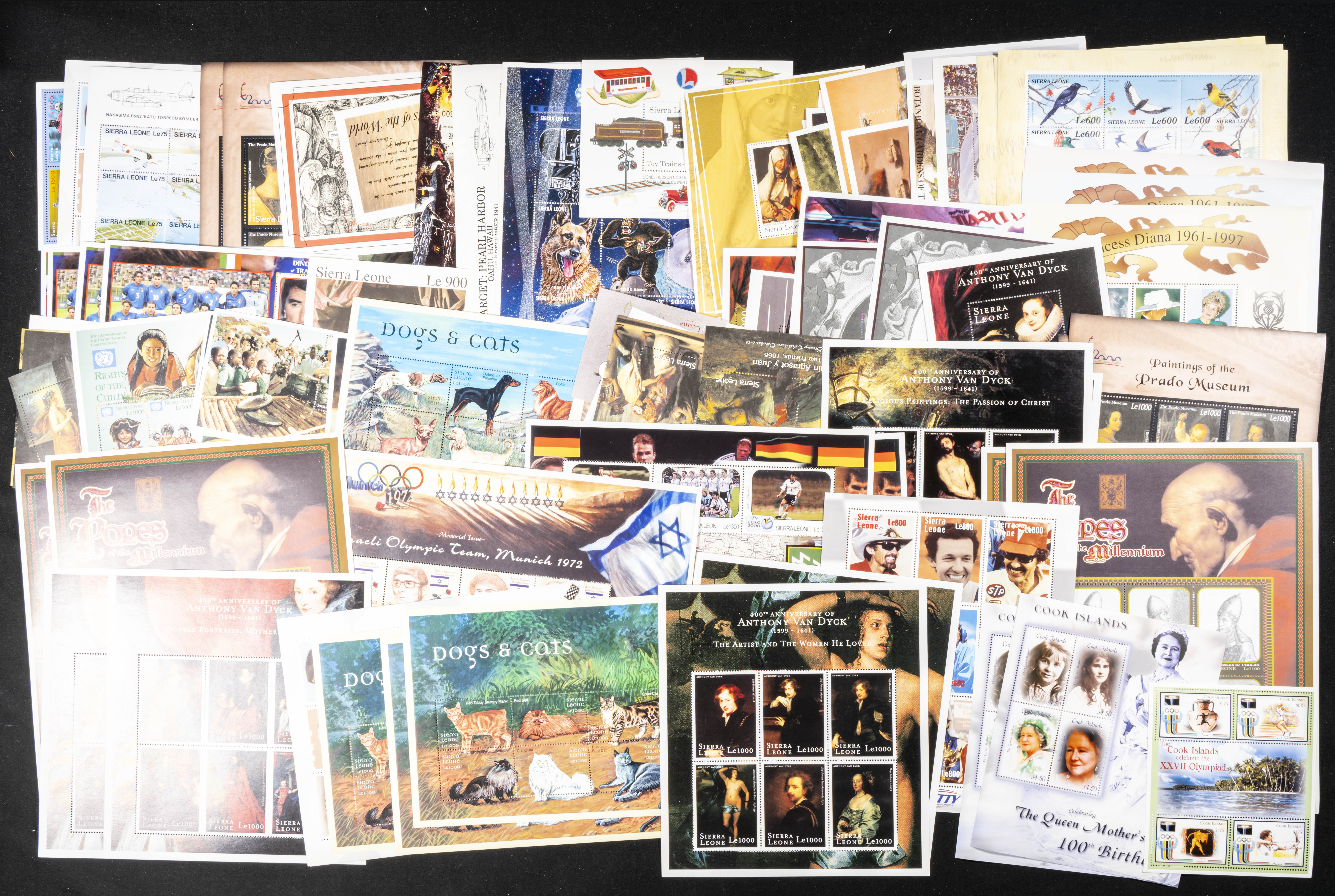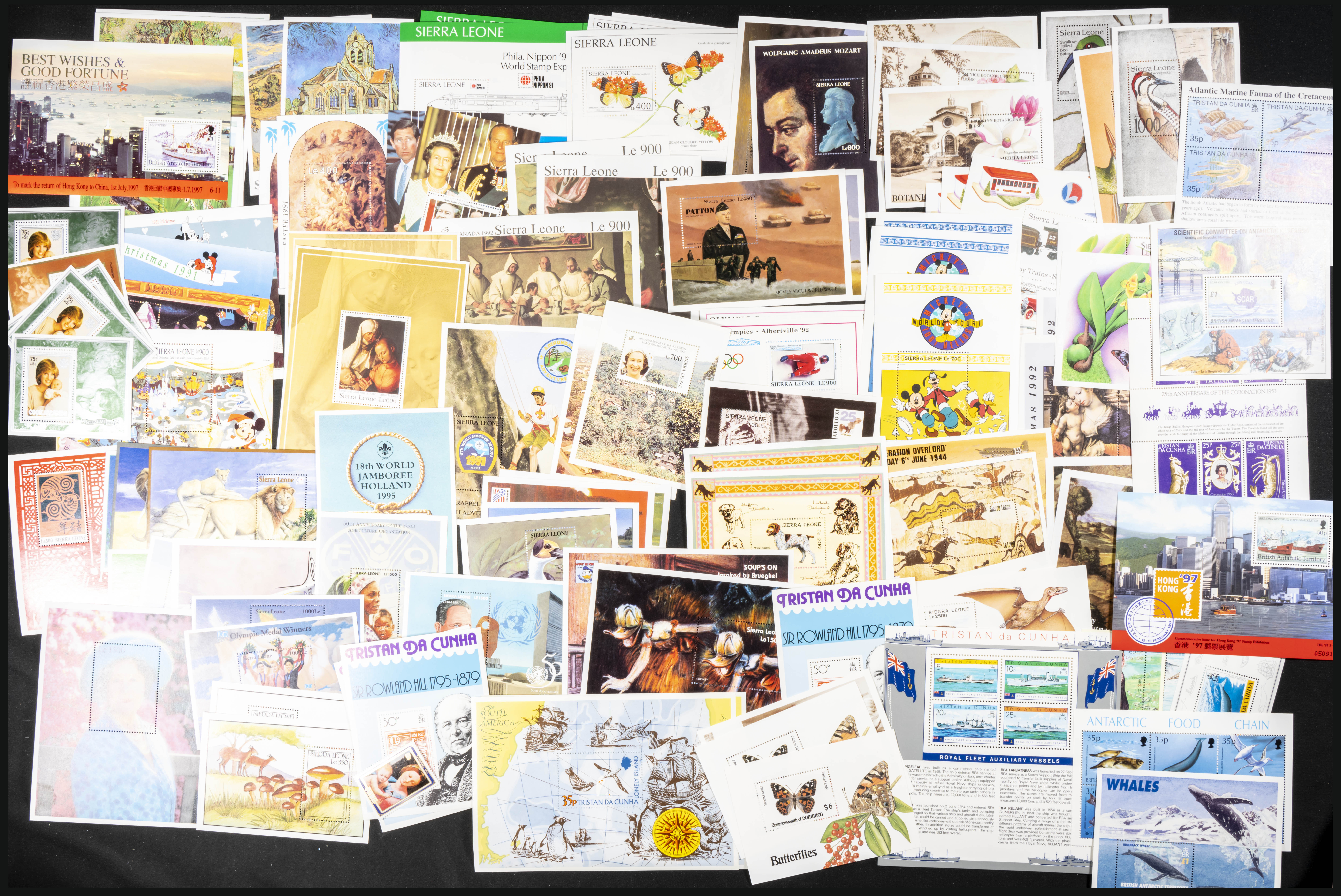 ★★(1975ca). Interesante conjunto de cientos (es posible que supere las mil) de series completas (en minihojas de diferentes tamaños) y hojas bloque de diversos países, la mayoría Africa y Caribe y de países de la Commonwealth entre 1975 y 1995, en nuevo y todas temáticas muy comerciales como Fauna, Flora, Deportes, Scouts, etc, muchas con repeticiones hasta diez unidades de cada. ALTISIMO VALOR DE CATALOGO. IMPRESCINDIBLE EXAMINAR.