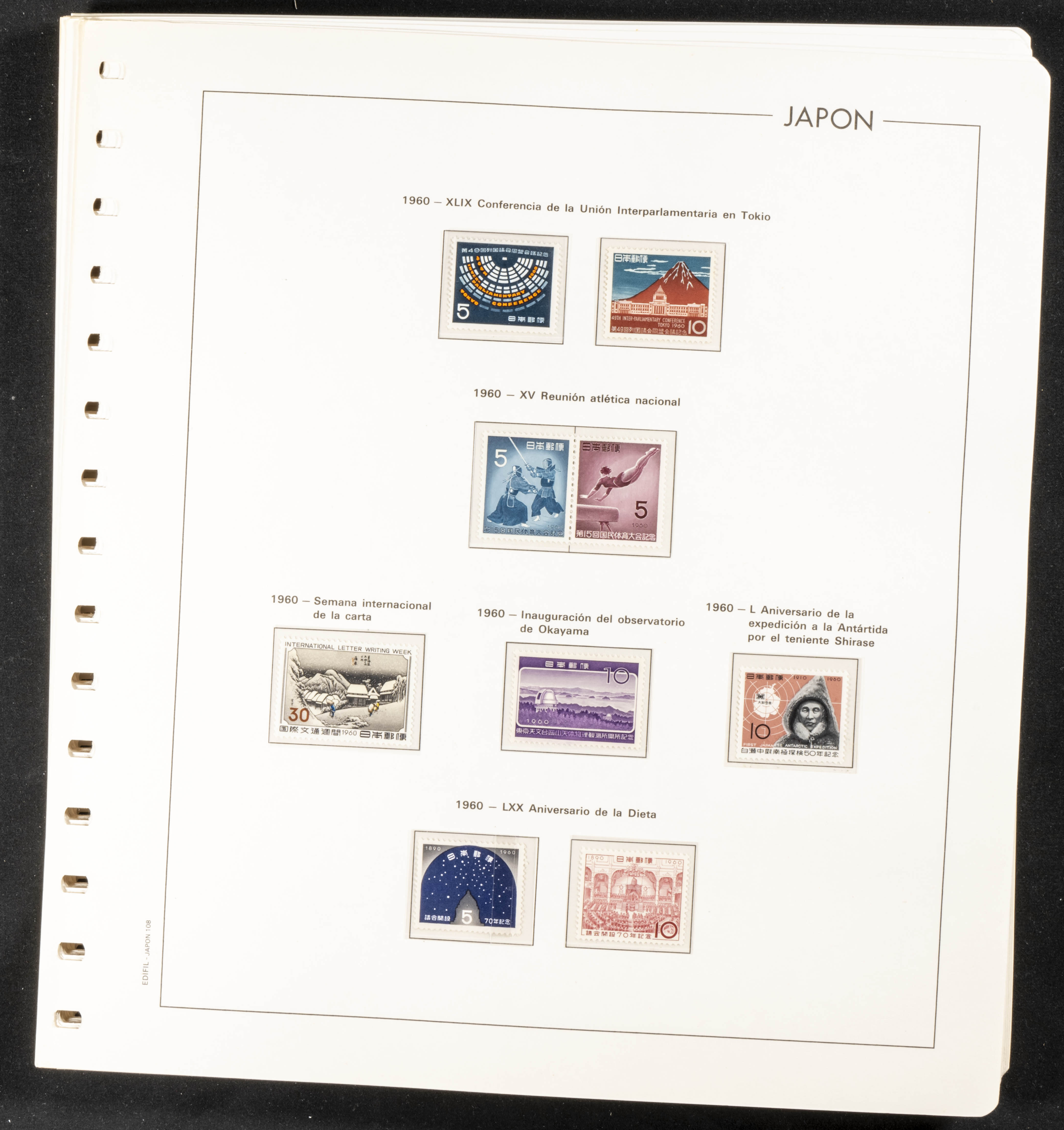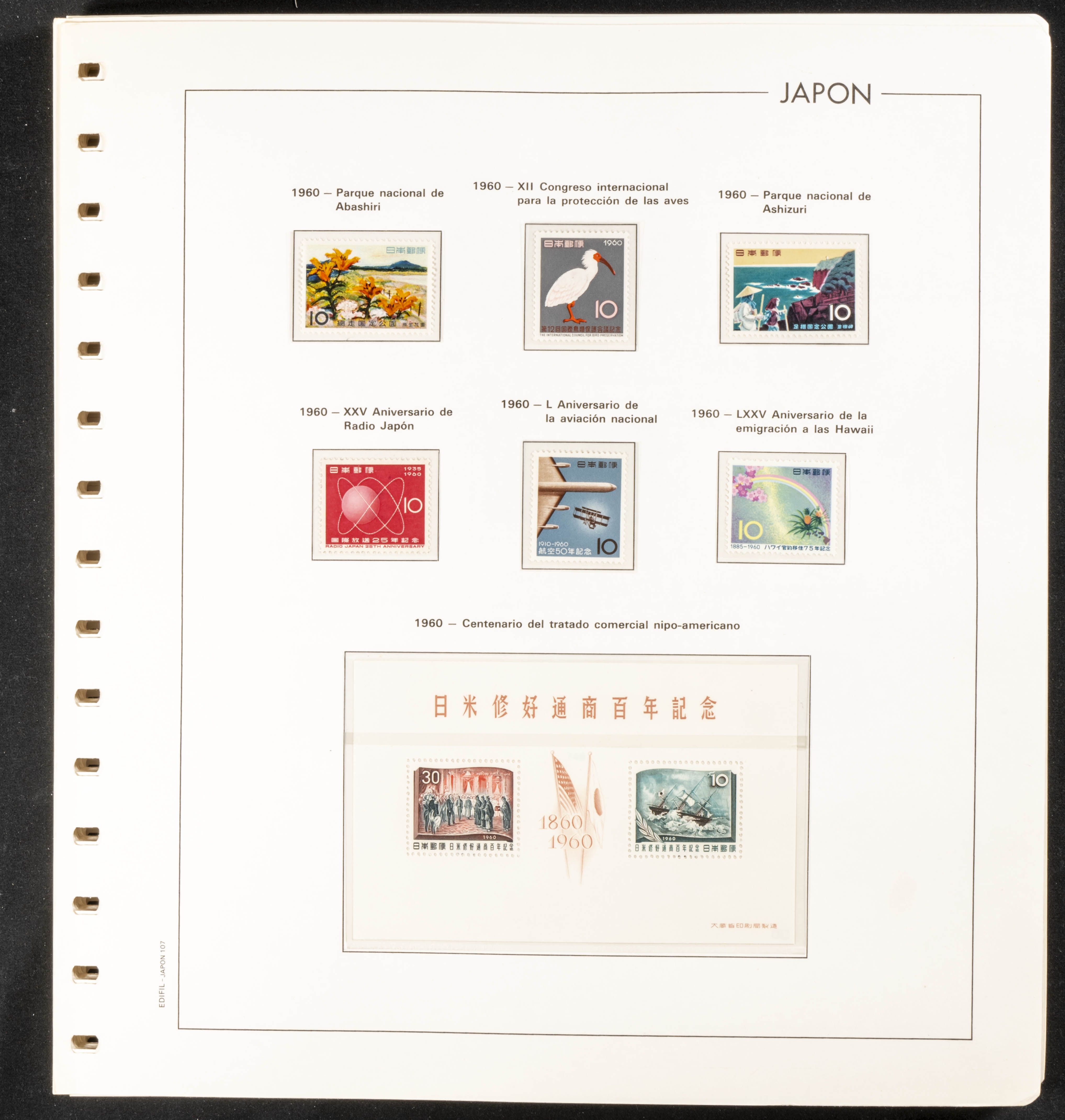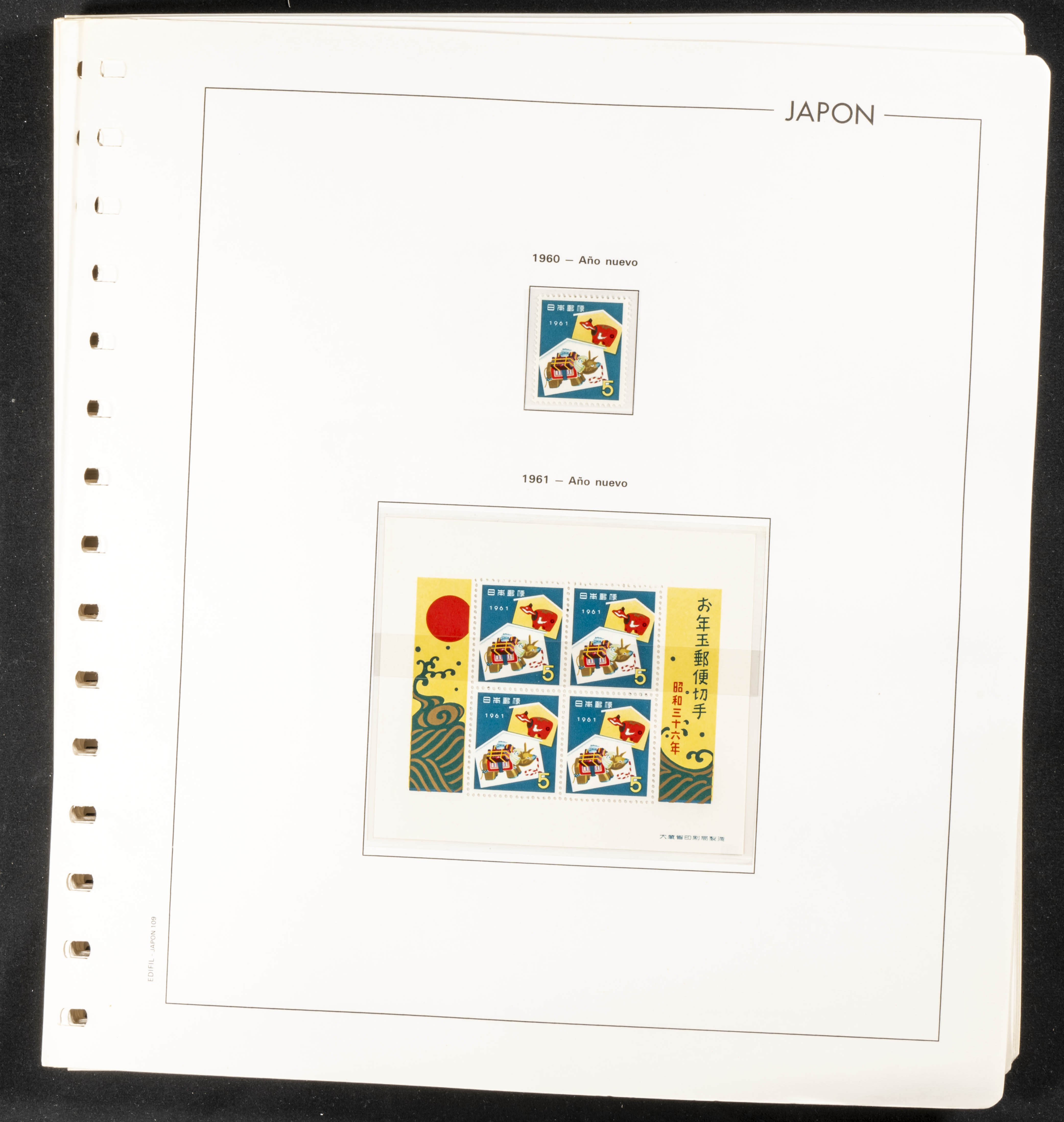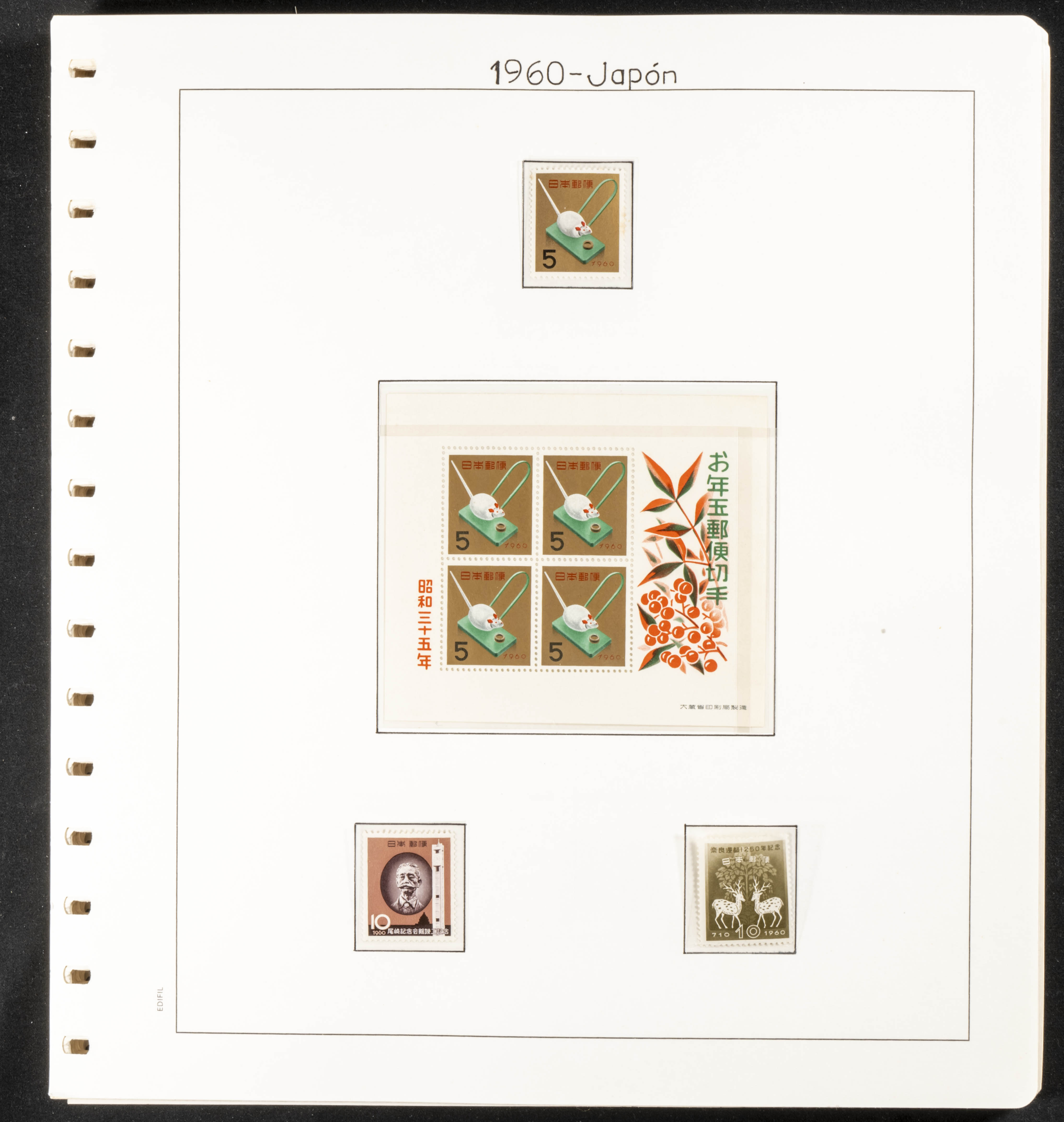 ★★(1960ca). Interesante colección de Japón completa entre 1960 y 1996, en nuevo y con las hojas bloque y la mayoría de los carnets emitidos. ALTO VALOR DE CATALOGO. A EXAMINAR.