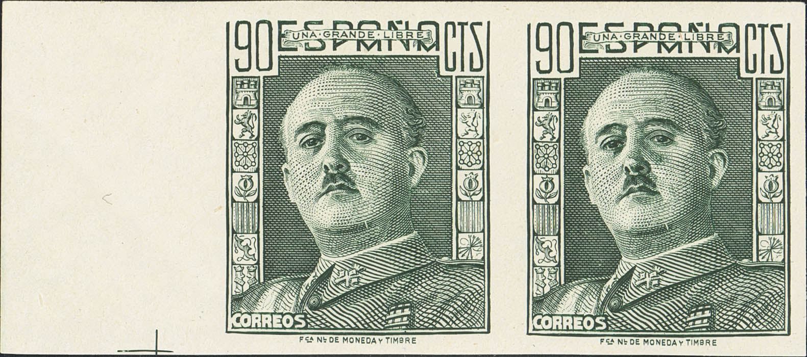★★ 1060s(2). 1949. 90 cts verde, pareja, borde de hoja. SIN DENTAR. MAGNIFICA Y RARA.
