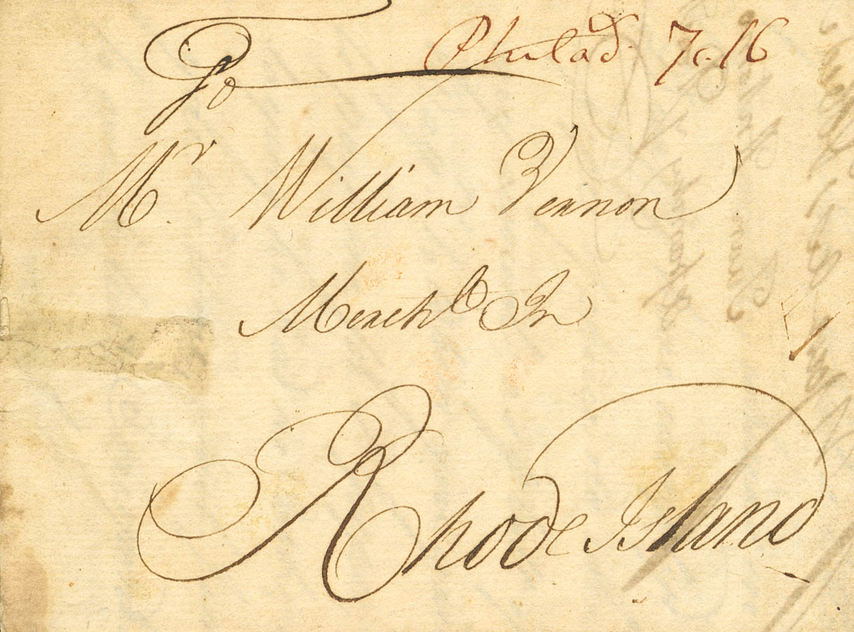 1764. LA OROTAVA (CANARIAS) a RHODE ISLAND (ESTADOS UNIDOS). Circulada privadamente hasta Filadelfia con anotación manuscrita "Phi.3", sin marcas, donde se encamina a través del agente Wilhem and Morris (manuscrito en el reverso). MAGNIFICA Y RARISIMO DESTINO Y ENCAMINADOR, ESPECIALMENTE CON ORIGEN EN LAS ISLAS CANARIAS. Ex-Antonio Cuesta.