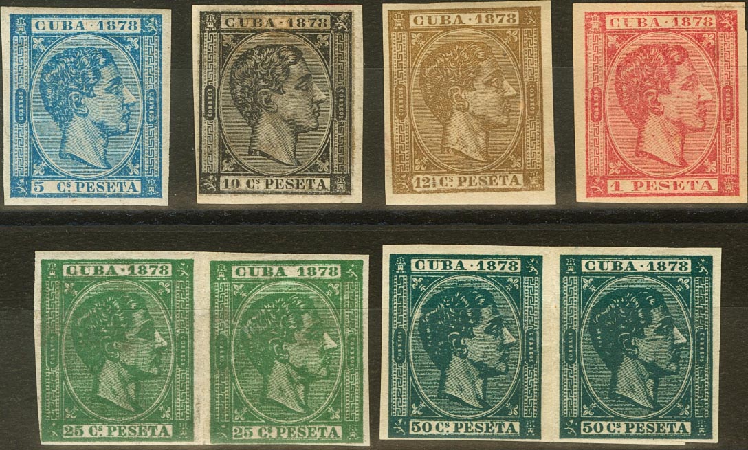 ★★/★ 44/49s. 1878. Serie completa, seis valores (el 25 cts y 50 cts, en pareja). SIN DENTAR. MAGNIFICA. Edifil 2024: 625 Euros