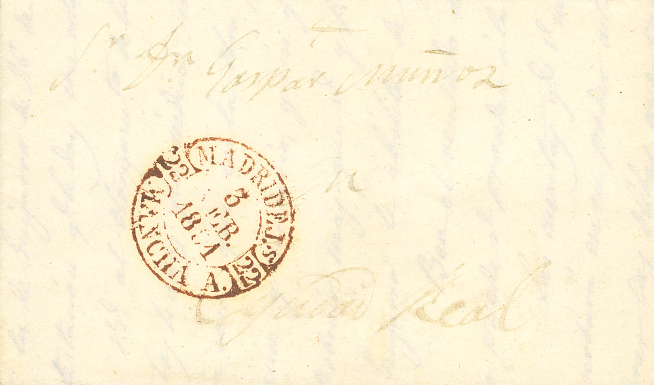 1851. MADRIDEJOS (TOLEDO) a CIUDAD REAL. En el frente baeza MADRIDEJ.S / MANCHA.A, en rojo. MAGNIFICA.