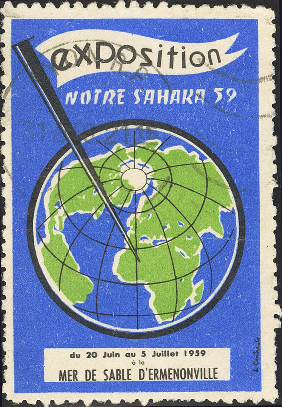 1959. Sin cifra del valor, multicolor. EXPOSITION NOTRE SAHARA 59. MAGNIFICA Y MUY RARA.