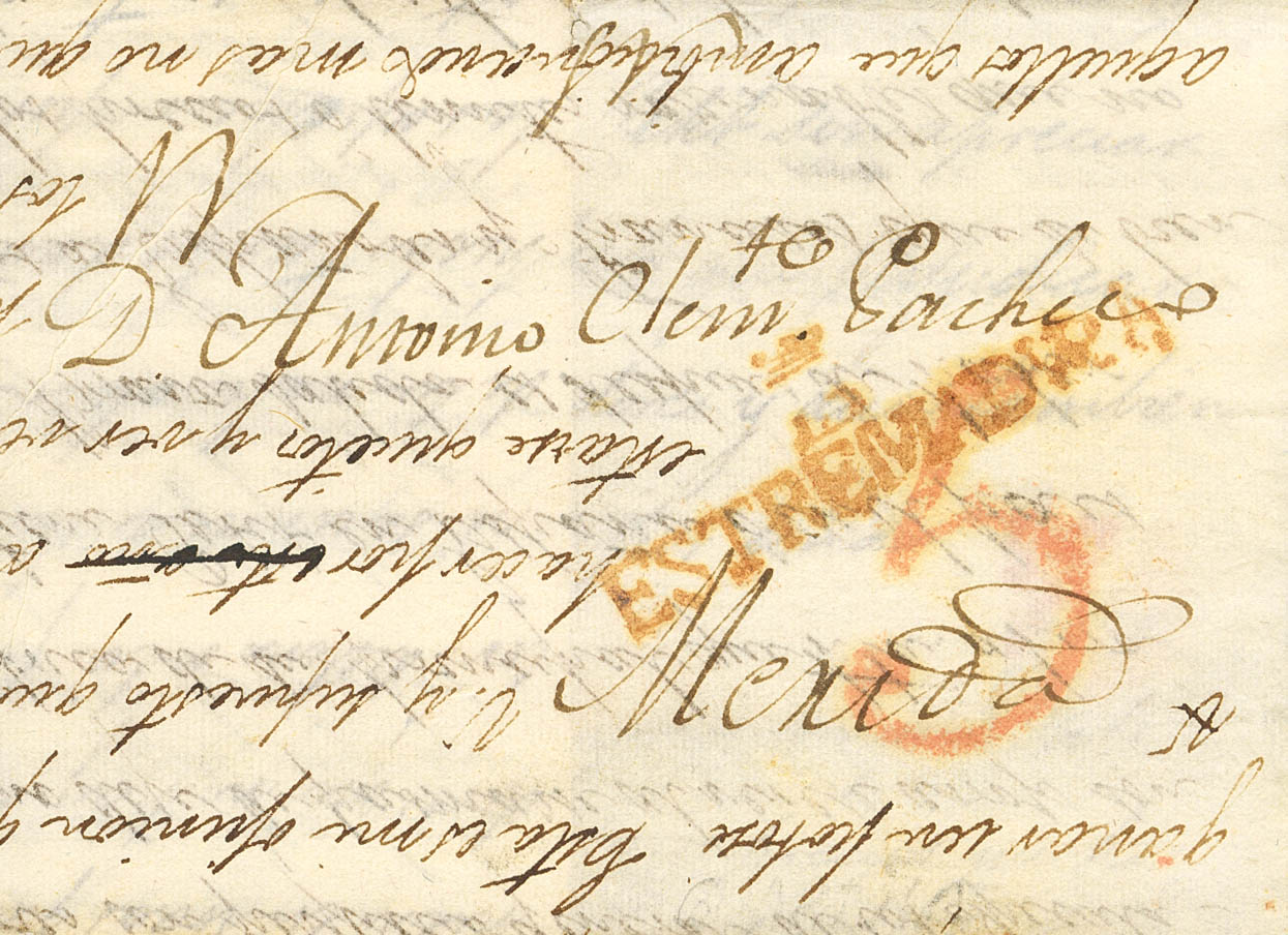 (1840ca). Dirigida a MERIDA. Marca G / ESTREMADVRA, en rojo de Guareña (P.E.3) edición 2004. MAGNIFICA Y RARA.