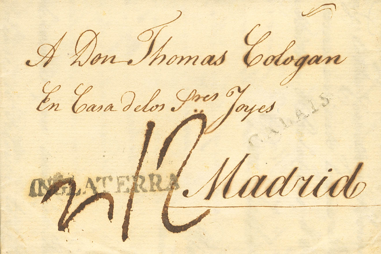 1790. LONDRES (INGLATERRA) a MADRID. Marca INGLATERRA, en negro aplicada a la llegada (P.E.113) edición 2004. MAGNIFICA Y MUY RARA. Ex-Antonio Cuesta.