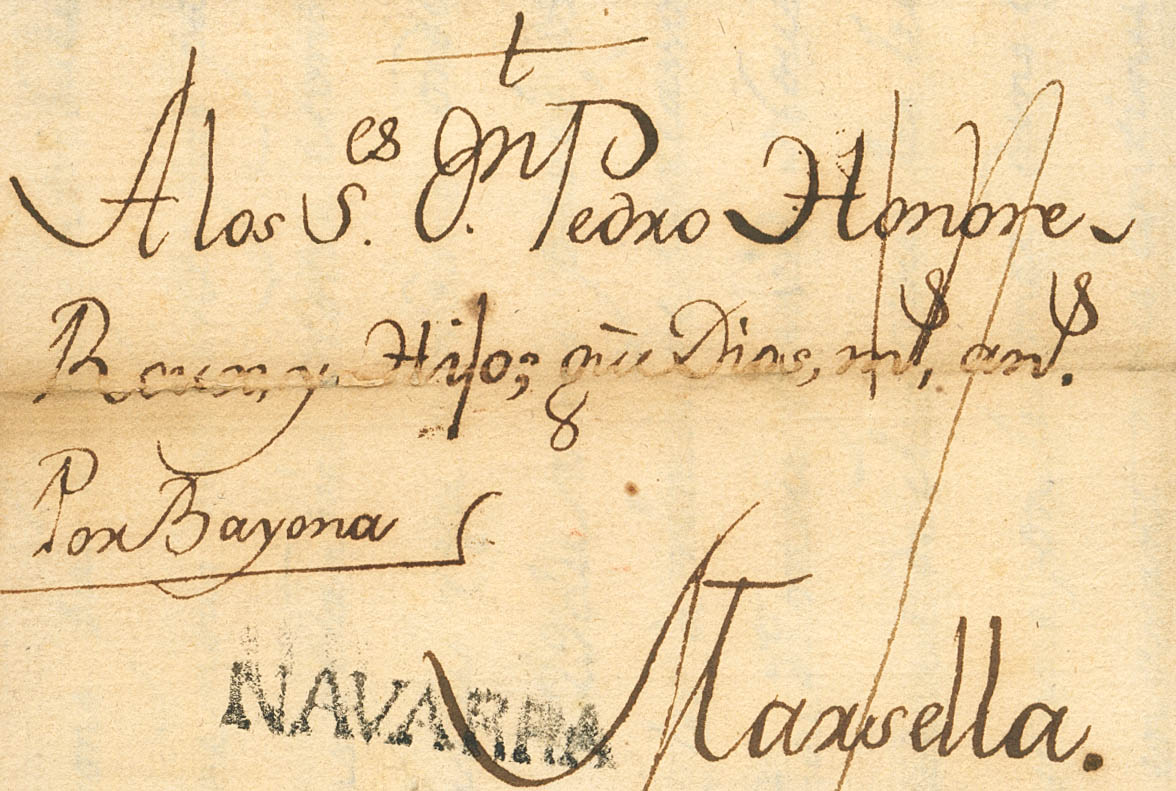 1756. PAMPLONA (NAVARRA) a MARSELLA (FRANCIA). Marca NAVARRA, en negro (P.E.8) edición 2004. MAGNIFICA. Ex-Antonio Cuesta.