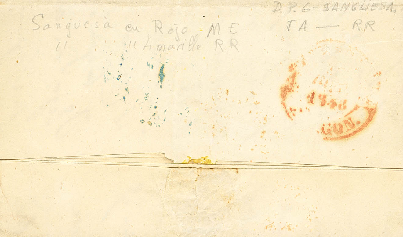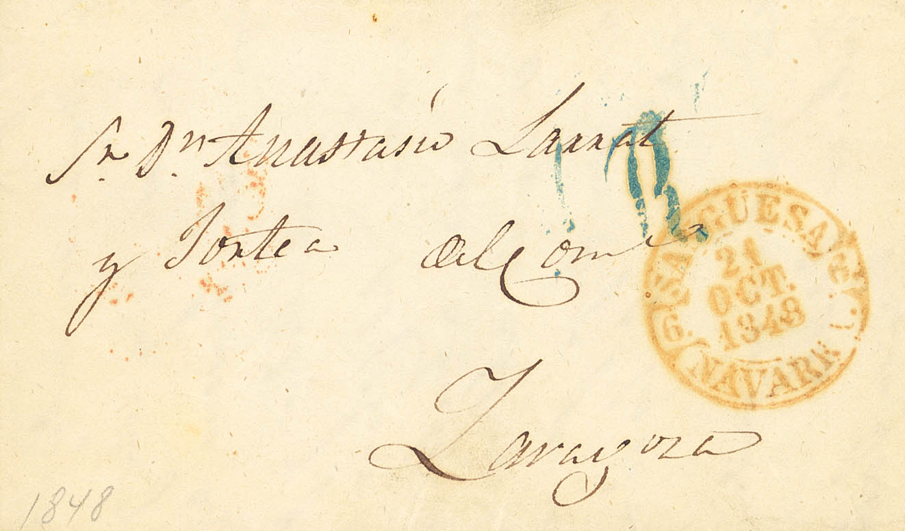 1847. SANGÜESA a ZARAGOZA. En el frente baeza SANGÜESA / NAVARRA, en rojo. MAGNIFICA ESTAMPACION.