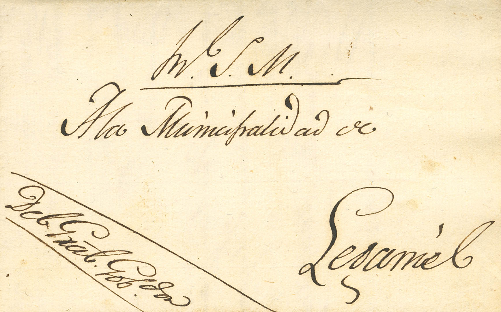 1812. TARANCON a LEGANIEL (CUENCA), circulada privadamente, sin marcas con anotación de franquicia "Des Gral. Gobdor". En el interior se informa al Alcalde de la localidad de suministrar una cierta cantidad de víveres para las tropas francesas bajo castigo en caso de no hacerlo y firmada por el Barón de Maupoint, General Gobernador de la Provincia de Cuenca. MAGNIFICA Y RARA.