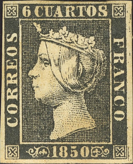 ★ 1A. 1850. 6 cuartos negro (II-12). MAGNIFICO. Cert. COMEX.