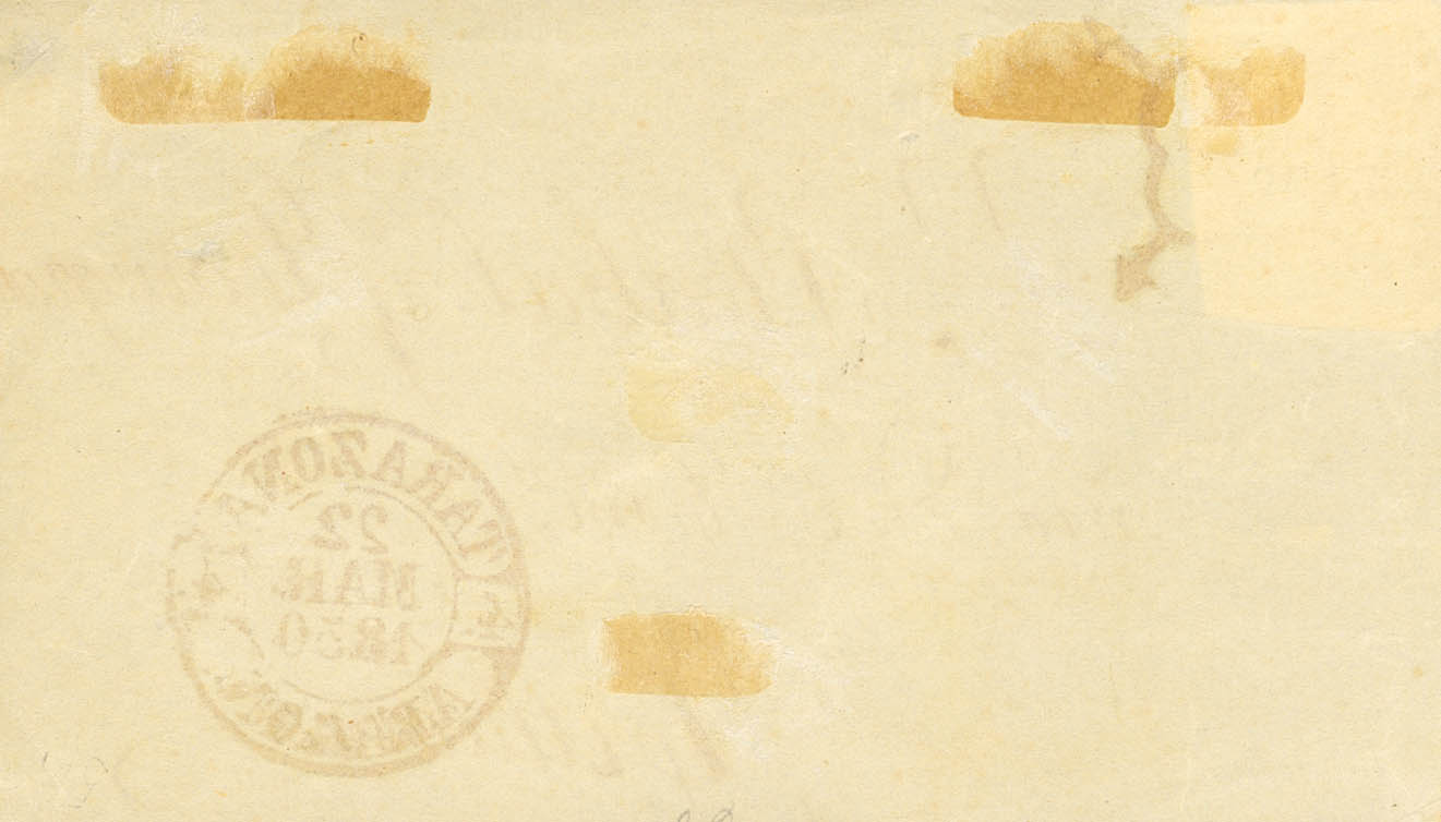 1A. 1850. 6 cuartos negro (II-40), esquina inferior derecha. Frontal de TARAZONA (ZARAGOZA) a CALAHORRA (LA RIOJA). Matasello ARAÑA, en rojo. MAGNIFICO Y ESPECTACULAR.