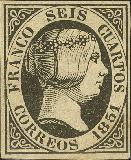 (★) 6. 1851. 6 cuartos negro. MAGNIFICO.