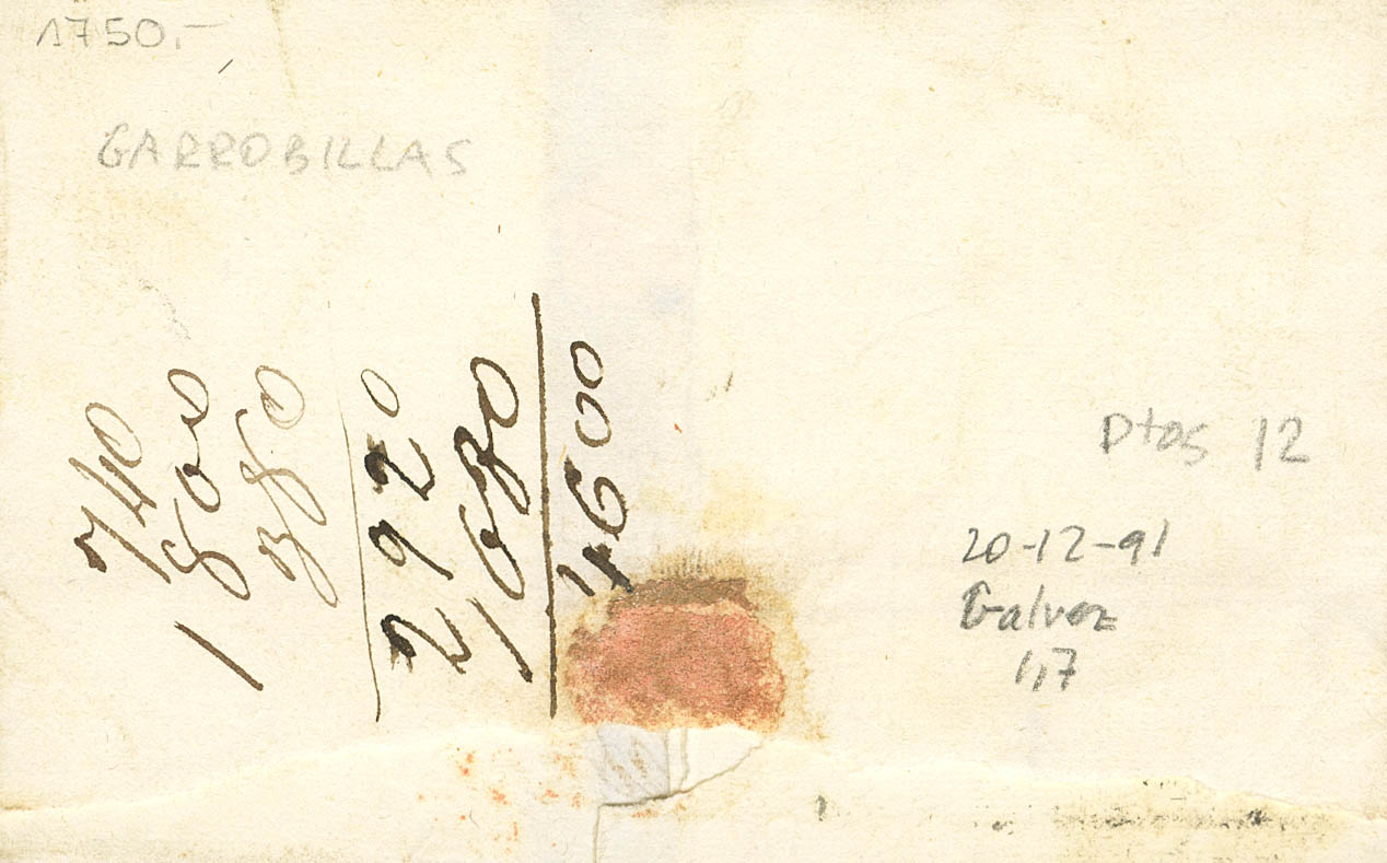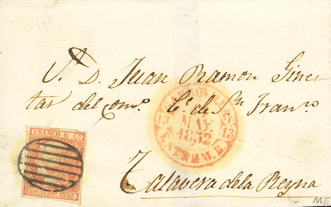 12. 1852. 6 cuartos rosa. GARROVILLAS (CACERES) a TALAVERA DE LA REINA (TOLEDO). MAGNIFICA.