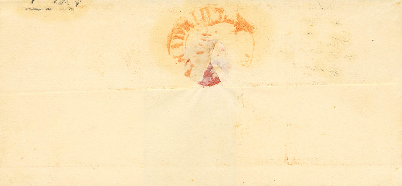 17. 1853. 6 cuartos rojo. RIBADESELLA a MADRID. En el frente baeza RIVADESELLA / ASTURIAS. MAGNIFICA.