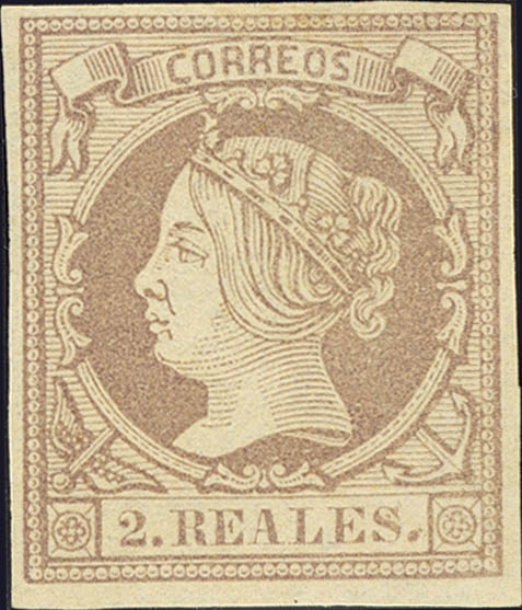(★) 56. 1860. 2 reales lila. BONITO. Cert. GRAUS.