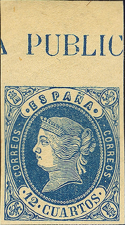 (★) 59. 1862. 12 cuartos azul, borde de hoja, MAGNIFICO Y ESPECTACULAR.
