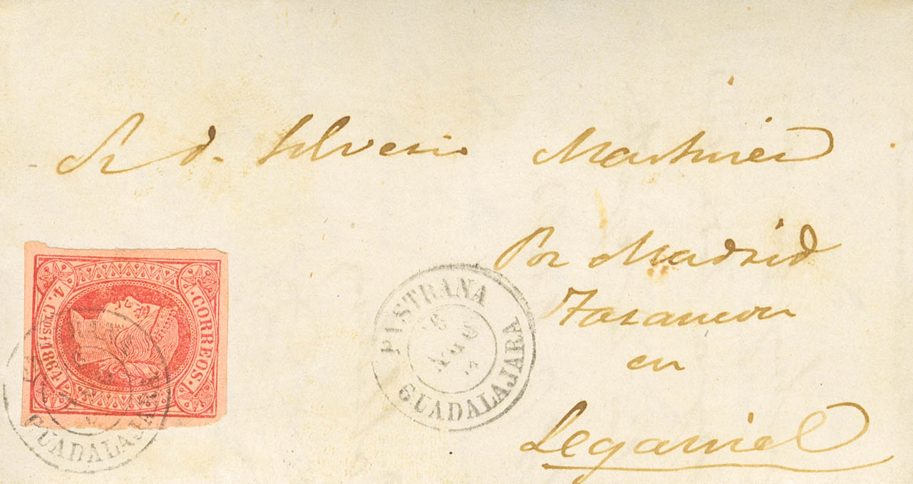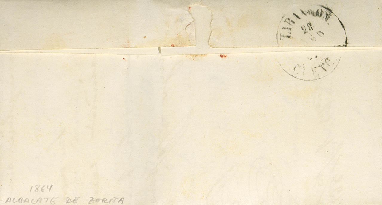 64. 1864. 4 cuartos rojo. ALBALATE DE ZORITA (GUADALAJARA) a LEGANIEL (CUENCA). Matasello PASTRANA / GUADALAJARA. MAGNIFICA Y RARISMA.