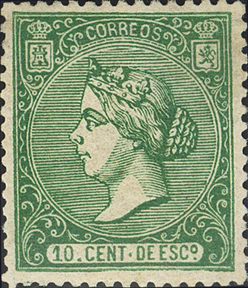 ★ 84. 1866. 10 cts verde. Color intenso y bonito centraje. MAGNIFICO. Cert. CEM.