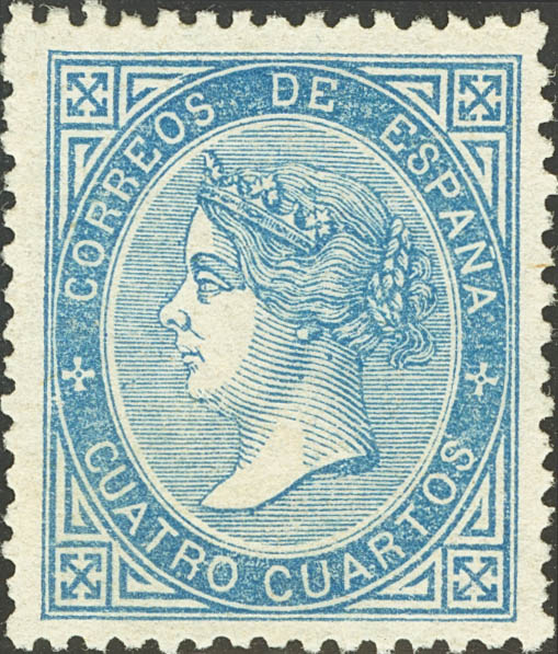 (★) 88. 1867. 4 cuartos azul. Muy bien centrado y color intenso. MAGNIFICO.