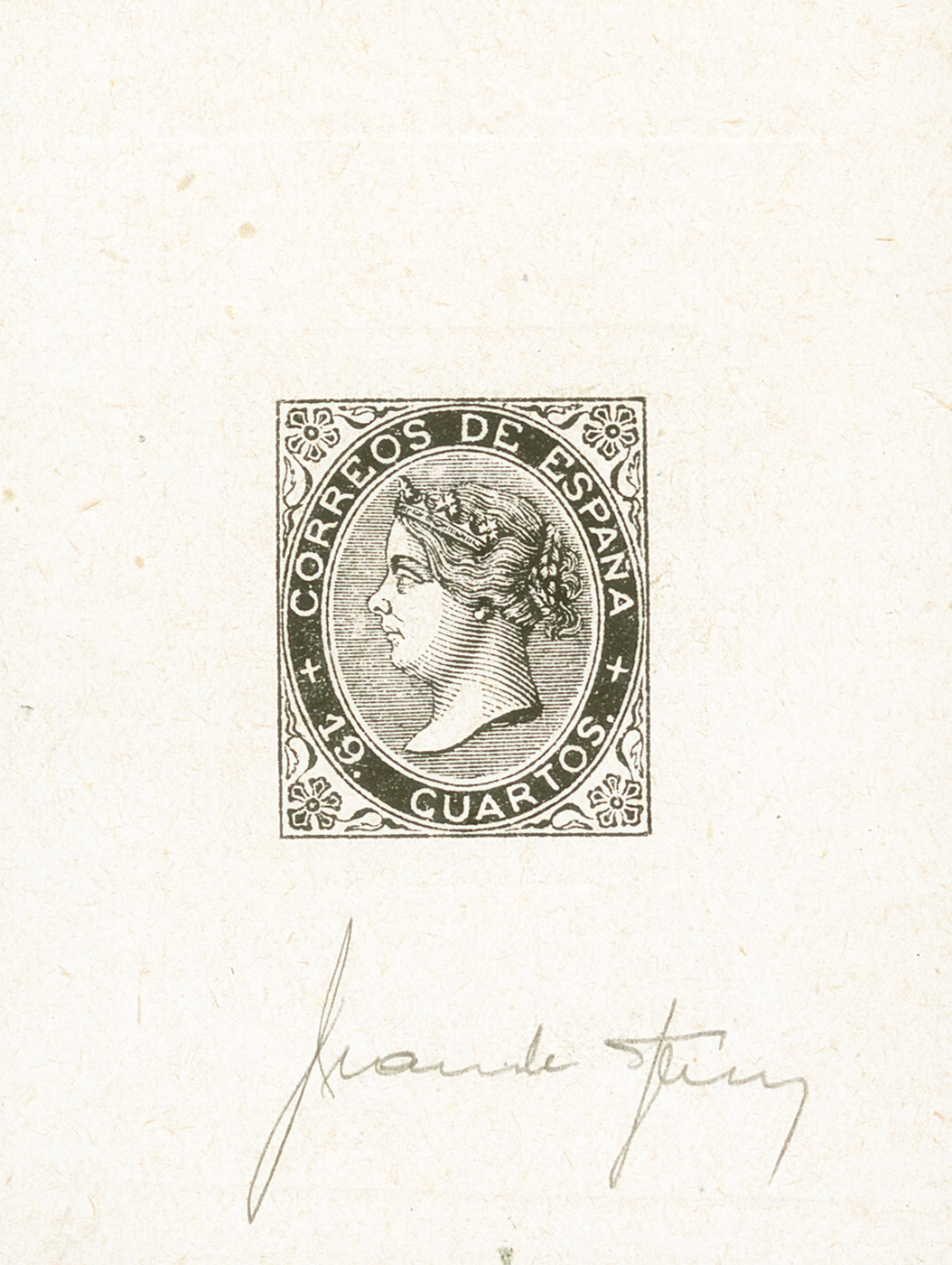 (★) 90F. 1867. 19 cuartos negro. PRUEBA DE SPERATI (Tipo A), con la firma de Jean de Sperati. MAGNIFICA Y RARA.