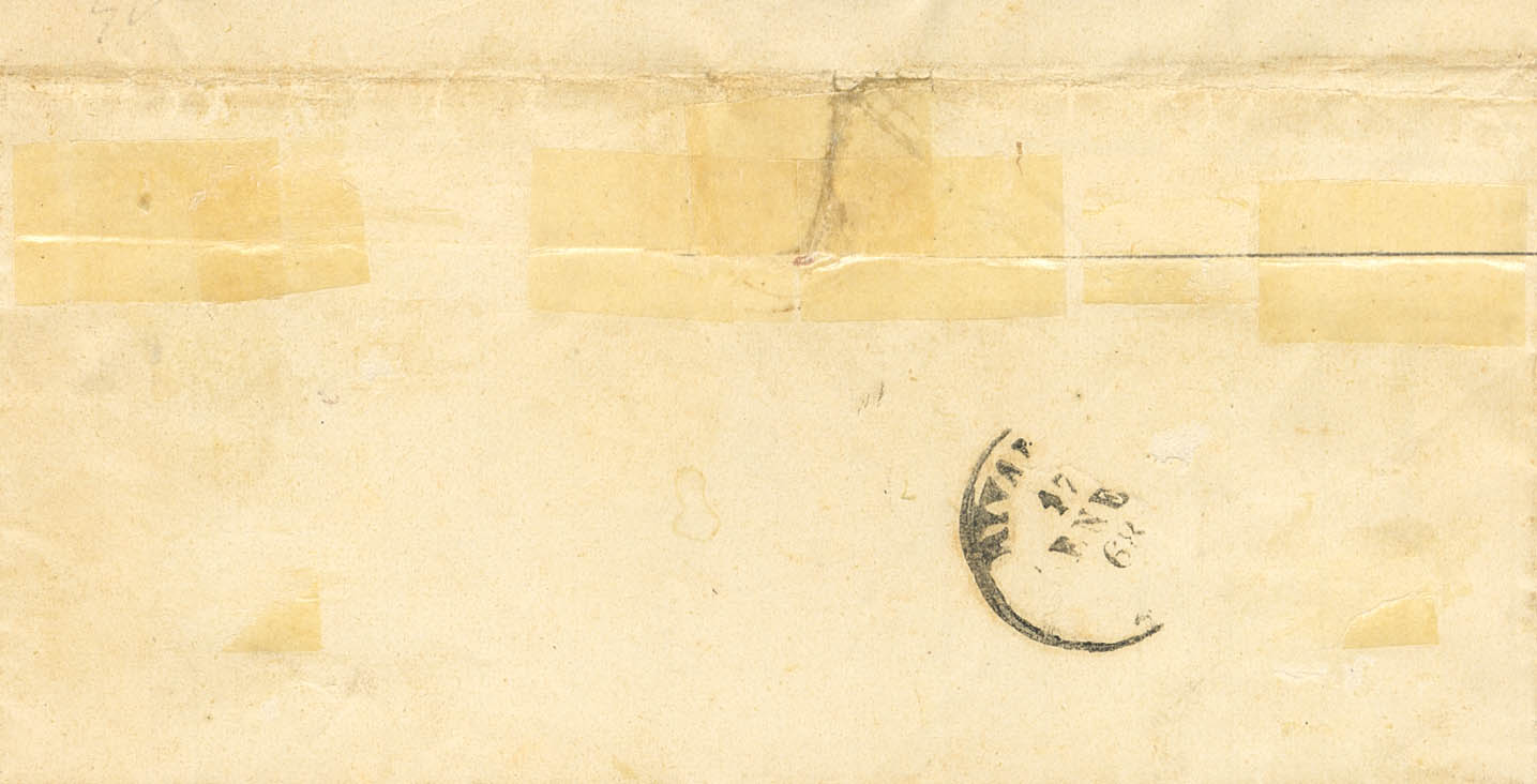 96. 1868. 50 mils castaño. VIGO (PONTEVEDRA) a RIBADEO. Matasello VIGO / PONTEVEDRA. MAGNIFICA ESTAMPACION Y RARISIMA.