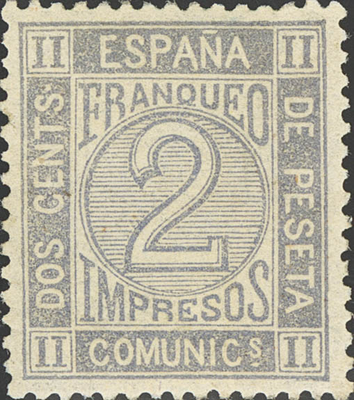 ★ 116. 1872. 2 cts gris. Excepcional color y centraje. PIEZA DE LUJO.