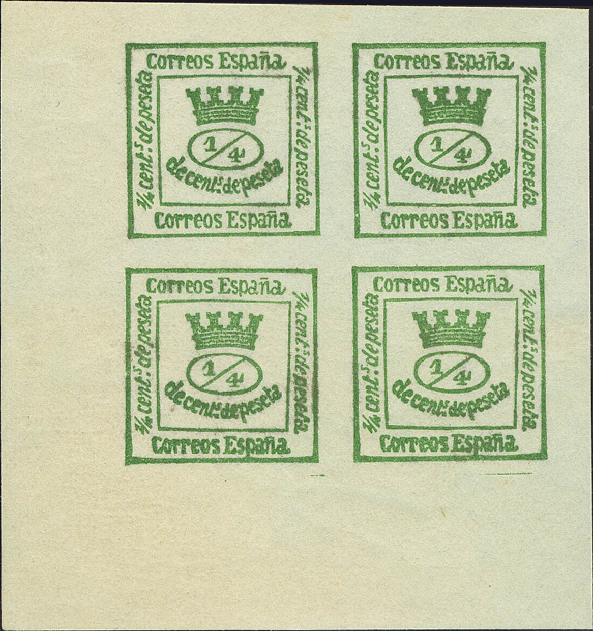 ★★ 130. 1873. 4/4 verde amarillento, esquina de pliego. Color intenso. PIEZA DE LUJO.