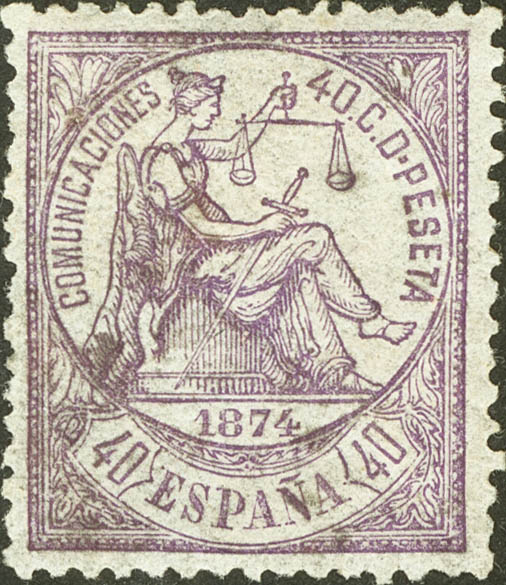 ★ 148. 1874. 40 cts violeta. Muy bonito centraje y color intenso. MAGNIFICO. Cert. GRAUS.
