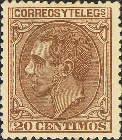 ★ 203. 1879. 20 cts castaño rojo. Centraje excepcional. PIEZA DE LUJO.