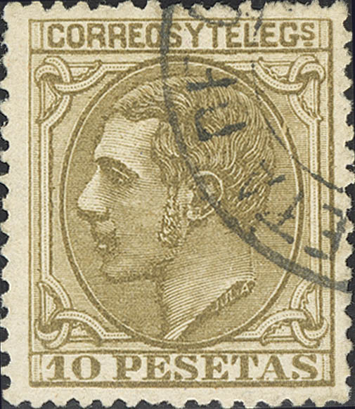 209. 1879. 10 pts sepia. Muy bien centrado. MAGNIFICO. Cert. EXFIMA.