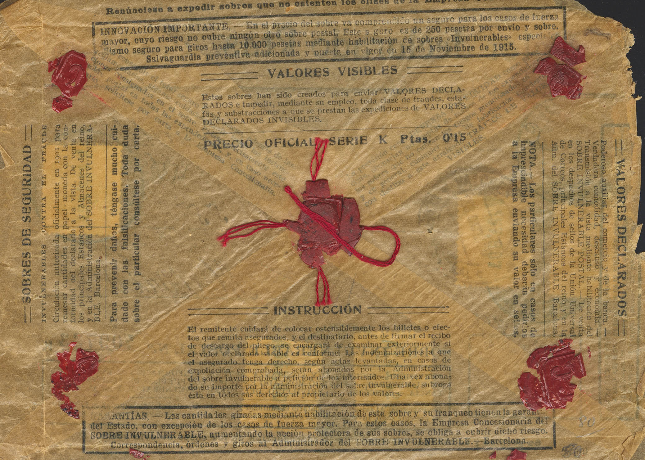 314(2), 315(3). (1922ca). 10 cts verde, dos sellos y 15 cts azul, tres sellos. Sobre "transparente" de Valores Visibles de ALCALA DE LOS GAZULES (CADIZ) a MADRID. Matasello VALORES DECLARADOS / ALCALA DE LOS GAZULES, en azul. MAGNIFICA.