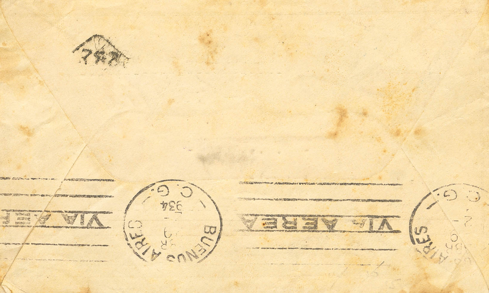 667, 671, 673(2). 1934. 25 cts carmín, 50 cts naranja y 1 pts pizarra, dos sellos. MADRID a BUENOS AIRES (ARGENTINA). Al dorso llegada. MAGNIFICA.